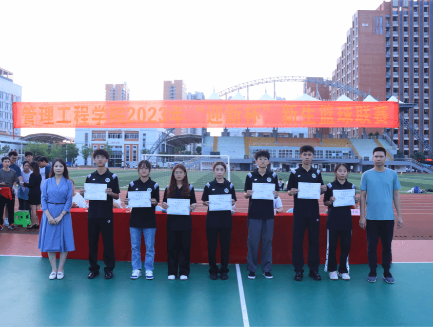 广西建院11月1日讯(管理工程学院 文/黄春 图/饶富国)为丰富学生课余生活,提高其综合素质,增进新生之间的感情,管理工程学院举办了“迎新杯”新生篮球赛。经过19天激烈的精彩角逐,该活动于10月31日圆满落下帷幕。该院副院长(主持工作)代端明,党总支副书记郭海棠,学管干事封炫妃、谢锡惠,学院学生会体育部指导老师何宇光以及各班辅导员参加了本次“迎新杯”新生篮球赛闭幕式。