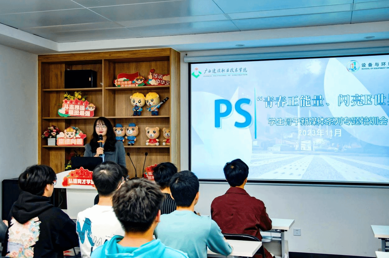 广西建院11月8日讯(设备与环境学院 文/冀旭月 练馨宇 图/韦吉峻)为加强大学生对Photoshop技术的认识与应用,提高学院宣传队伍的整体素养,11月7日下午,设备与环境学院在学校网络思政中心宣讲室组织开展学生骨干新媒体系列专题培训第一讲——PS基本技能培训。本次培训会由学院易班指导老师冀旭月主持,消防2101班莫志铻同学主讲。