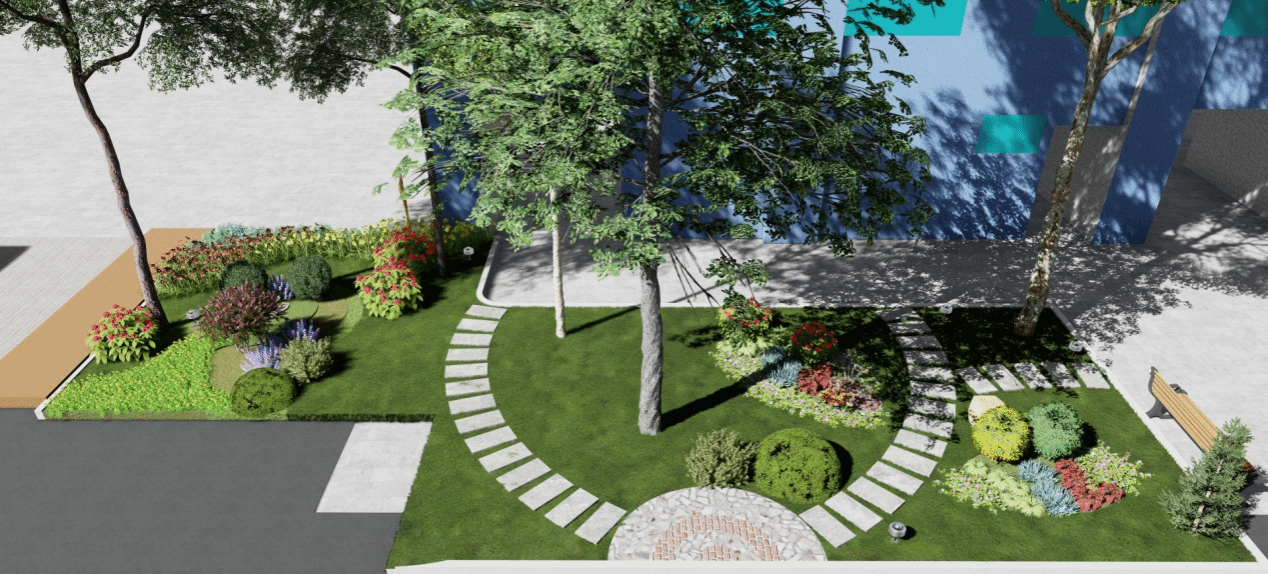 位于16栋学生宿舍对面的智慧洗衣房,内部敞亮清新,窗明几净,绿植盎然,但外围绿化景观略显荒芜,缺乏层次性和观赏性,影响了师生的视觉感和体验感。师生们认真勘察现场,结合场地、光照等实际情况,利用所学专业知识,因地制宜,科学配置植物,圆满完成了该区域的改造设计任务,并参与了改造施工以及植物的后期养护。