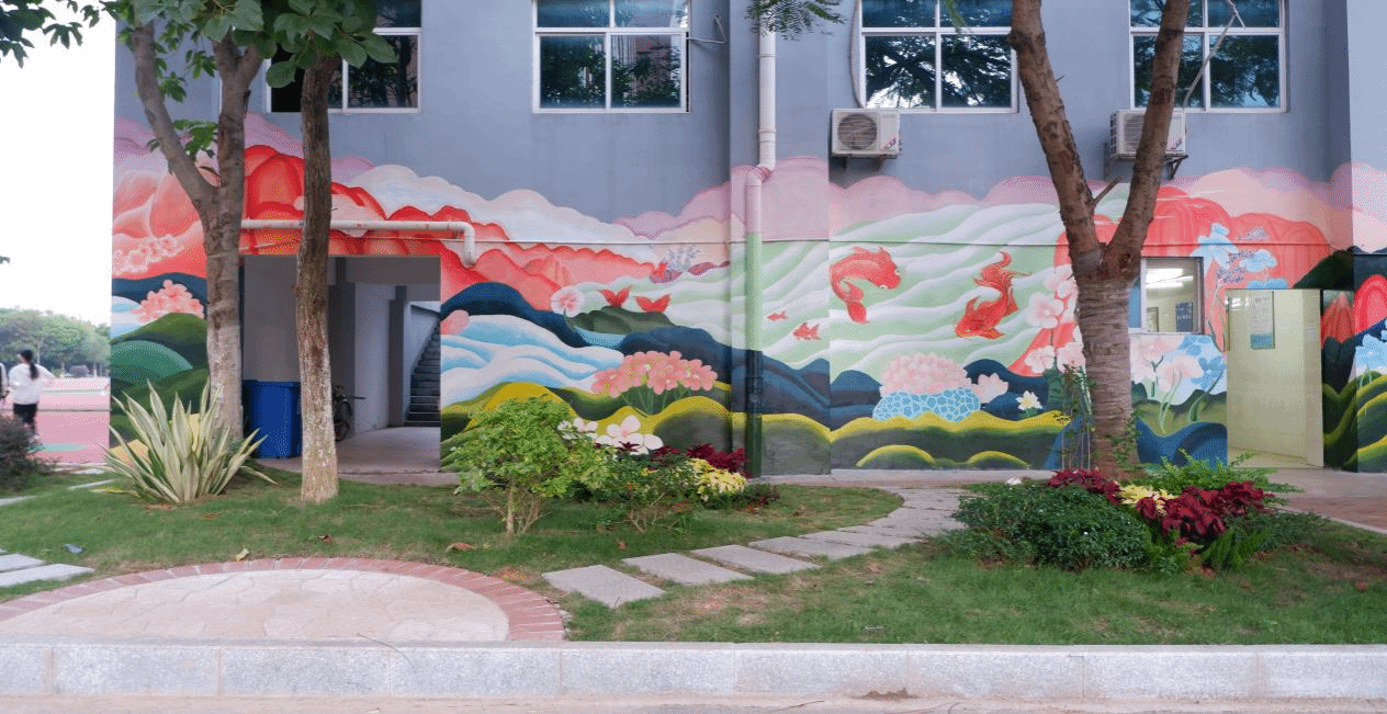 墙绘美化,为校园增点色