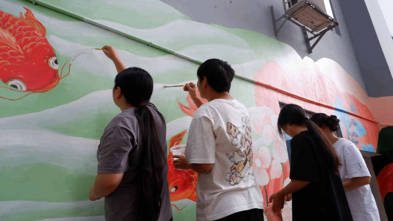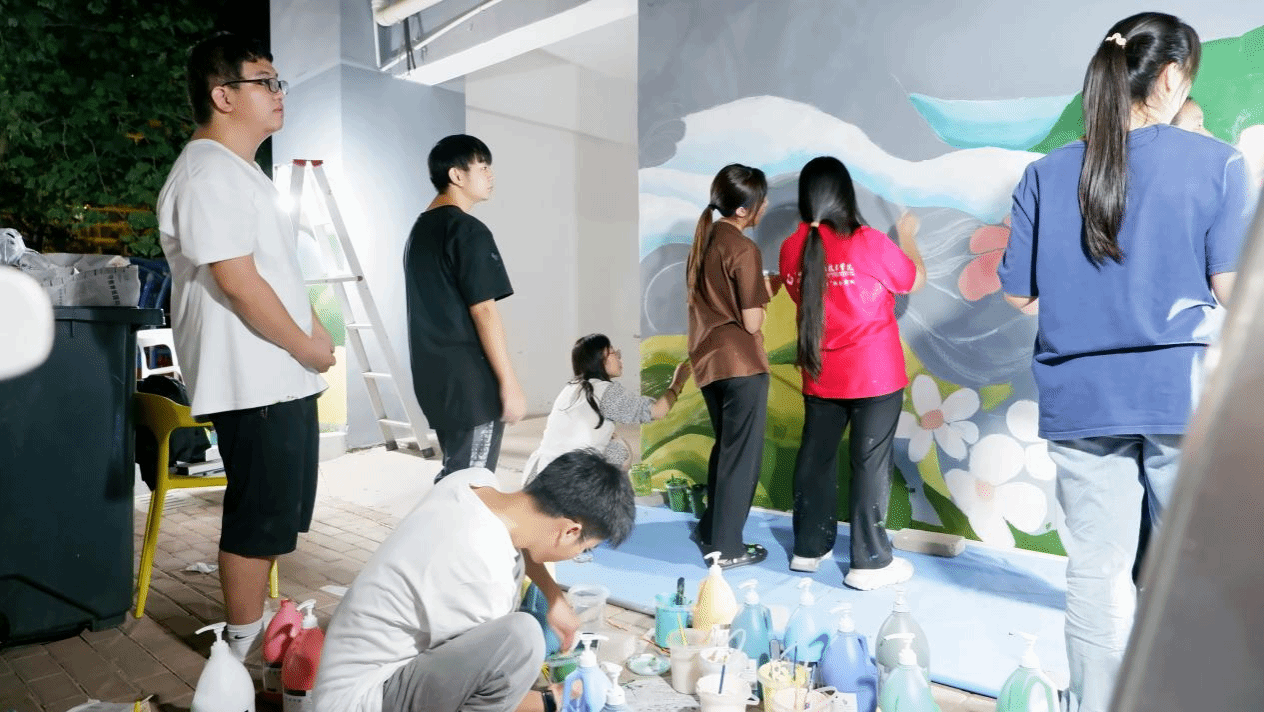 师生绘制智慧洗衣房墙画