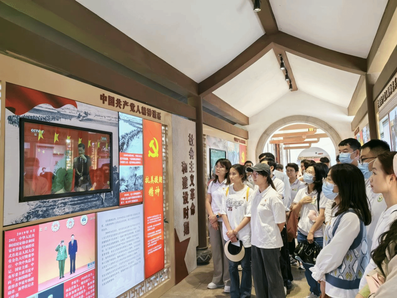 活动中,设备与环境学院师生们首先参观了中国共产党人精神谱系主题园。主题园以“两厅一廊一馆”为主体,以时间为轴,多角度、全方位地展示了中国共产党在新民主主义革命时期、社会主义革命和建设时期、改革开放和社会主义现代化建设新时期、中国特色社会主义新时代所形成的系列伟大精神,再现了中国共产党百年奋斗的光辉历程和伟大成就。通过认真聆听讲解员对中国共产党人精神谱系背后的英雄事迹、精神内涵的详细介绍,坚定了党员师生和入党积极分子传承“坚持真理、坚守理想,践行初心、担当使命,不怕牺牲、英勇斗争,对党忠诚、不负人民”伟大建党精神的决心信念。