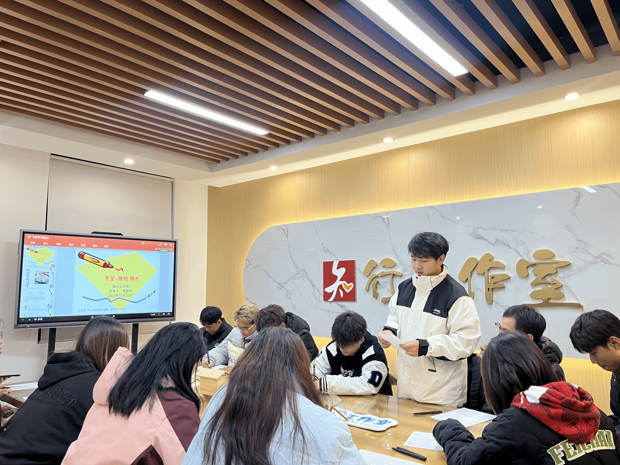 梁金来老师以“共话冬至俗”为主题介绍了冬至文化,并组织同学们通过诵读冬至诗词的形式深刻了解中华民族传统节日文化的精髓。大家通过分享家乡冬至习俗的形式,展现不同地区冬至节庆方式,增进对冬至文化的理解。