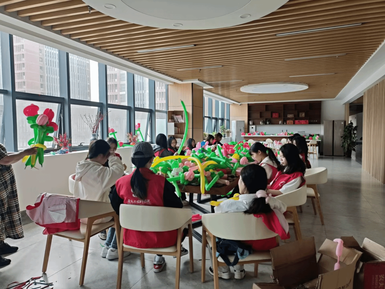 发挥高职院校学生实践动手能力强的特点,学院协助学校工会开展“三八”妇女节气球花、仿真花制作活动。活动期间,志愿者们大胆发挥想象力,耐心用心制作,玫瑰花、百合花、向日葵等气球花如魔术般呈现眼前,栩栩如生。活动不仅锻炼了同学们的动手能力,更让大家深刻体会到了志愿服务带来的快乐与成就感。