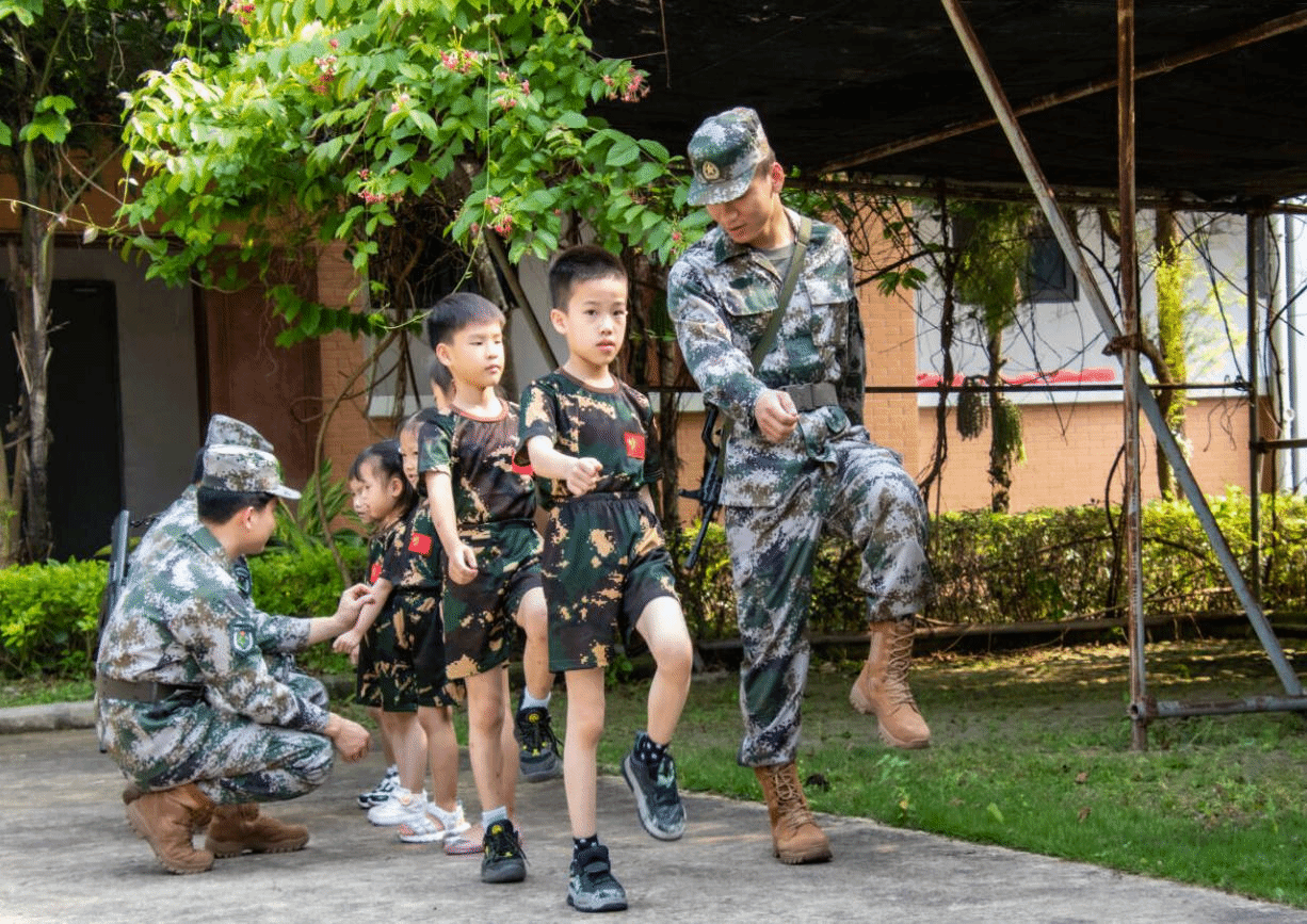 “国防小先锋”们学习站军姿、练习齐步走