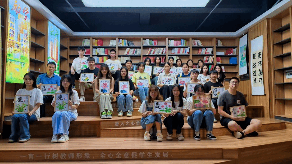为增强对廉洁文化的认知和理解,学院团总支组织新发展团员代表进行了廉洁诗词与廉洁故事分享。与会团员还进行了廉洁主题纽扣贴画手工活动。同学们用心用情,互帮互助,一幅幅以“莲”为主题的贴画生动又形象地展现在大家面前。