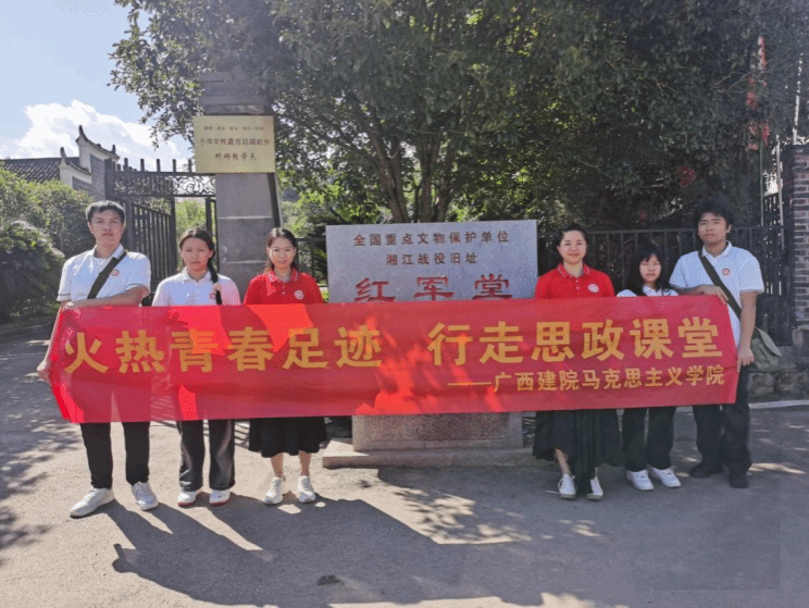 本次红色夏令营活动是由职业院校红色文化育人共同体主办、由多所红军长征主要出发地、途径地共同体院校承办的一个全国性师生重走红军长征路的红色走读实践研修活动,首页马克思主义学院刘荔源、唐海莲两位教师带领4名青年马克思主义者协会学生代表参加了突破湘江主题营,开展了一堂赓续红色血脉、富有特色创新的行走思政课堂。