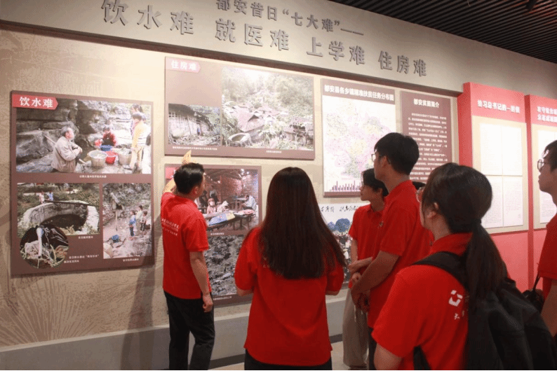 实践团还参观了都安民族博物馆。该馆以瑶族文化、脱贫攻坚、都安特色文化历史为主题,展示都安人民的生活方式和文化特色。通过参观,实践团更深入地了解了都安地区的民族文化特色,也感受到了都安人民过去的艰苦日子与现在的幸福生活。