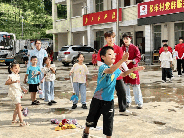 7月15日至16日,实践队前往多乐村面向留守儿童、寄宿儿童、困境儿童等少年儿童群体开展了铸牢中华民族共同体意识讲座、非遗手工体验教学和民族体育体验教学等活动。在讲座中,实践队成员紧紧围绕“民族团结心连心,中华民族一家亲”主题展开讲授,一个个鲜活真实的民族团结故事,让小朋友们进一步加深了对民族团结的了解。非遗手工课堂上,实践队成员根据小朋友们的兴趣爱好组成两个小组,分别开展纸鸢创作和中国龙灯笼制作体验活动。多脉村驻村第一书记龙波和多乐村驻村第一书记包磊也加入体验行列中,现场氛围欢乐、热闹。