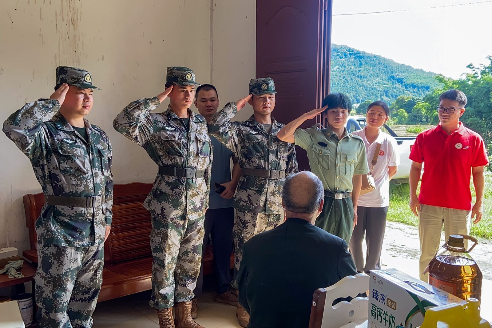 拥军优属同心圆,军民鱼水情谊深。实践团成员怀揣着对英雄的敬仰,踏上了致敬老兵的旅程。在当地工作人员的帮助下,实践团成员与老兵、烈士家属围坐一起,他们从战火纷飞的往事谈到和平年代的安宁,从个人的成长经历谈到国家的繁荣富强,言语中无不透露着对祖国的深情和对人民的忠诚。退役复学大学生代表实践团向烈士家属敬礼,表达崇高的敬意。