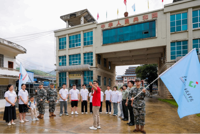 红旗飘扬显国威,守边固防展担当。活动期间,实践团在边境板八中学组织了一场隆重的升国旗仪式。退役复学大学生迈着铿锵有力的步伐护卫国旗,在庄严的国歌声中,五星红旗冉冉升起。国旗下的“国家安全教育课”让在场的学生、教师、边民和村干部深刻明白,只有铸牢国家安全屏障,守稳边疆国门,才能建设美好家园,共享幸福生活。