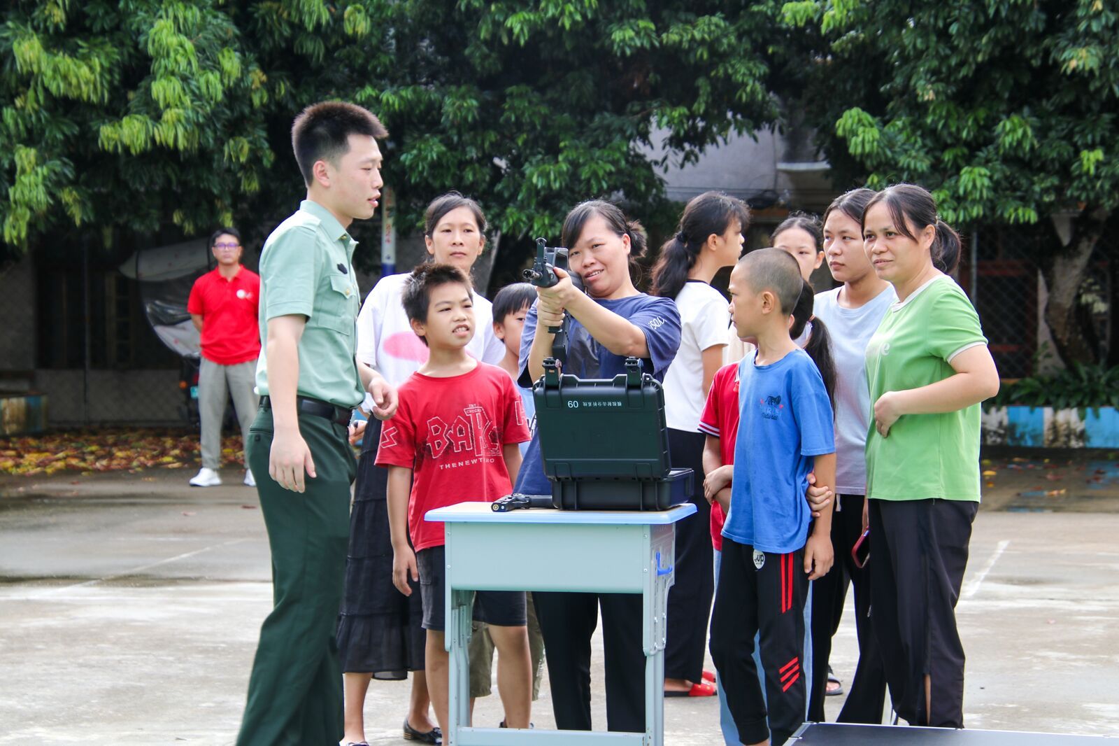 国防教育强民心,共筑爱国强军梦。“8.2环、9.1环、9.3环……”激光模拟射击系统播报着孩子们射击的成绩。他们手握“枪械”,模拟实弹射击,有模有样。在军事模型前,实践团成员为同学们讲解各类武器装备,普及国防知识。同学们听得津津有味,对国家军队建设和先进装备赞不绝口。退役复学大学生们还通过CPR设备演示、无人机操控、单兵技战术演练等,传授战地救护、自卫防身、预防空中打击等实战技能,帮助边民们进一步掌握了求生救护技能和实战应用的守边本领。