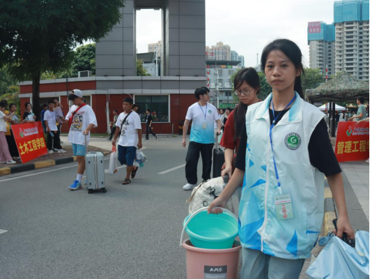 学生志愿者帮助新生搬运行李