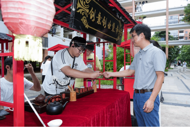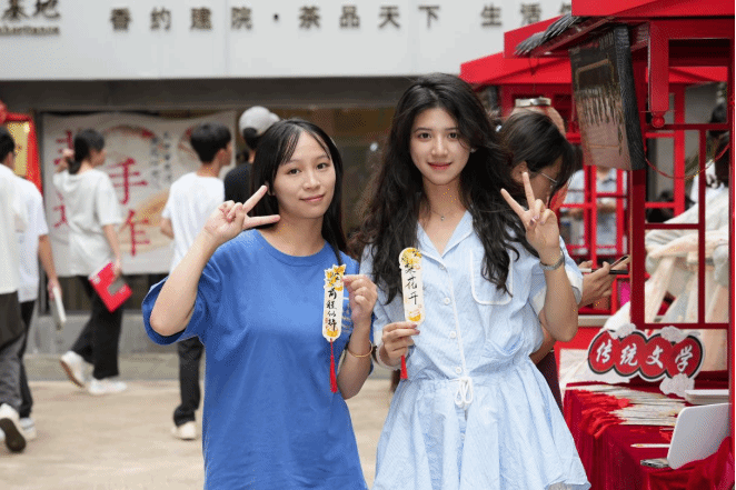 活动现场以逛市集、淘非遗、做文创、跳竹竿等多种活动形式进行,推出了创意手作、非遗竹编、非遗漆扇等多个传统文化手工活动,将非遗与教育巧妙结合,让师生们通过手作体验认识非遗、了解非遗、传承非遗,直观感受传统文化的无穷魅力。师生热情高涨,现场反响热烈。
