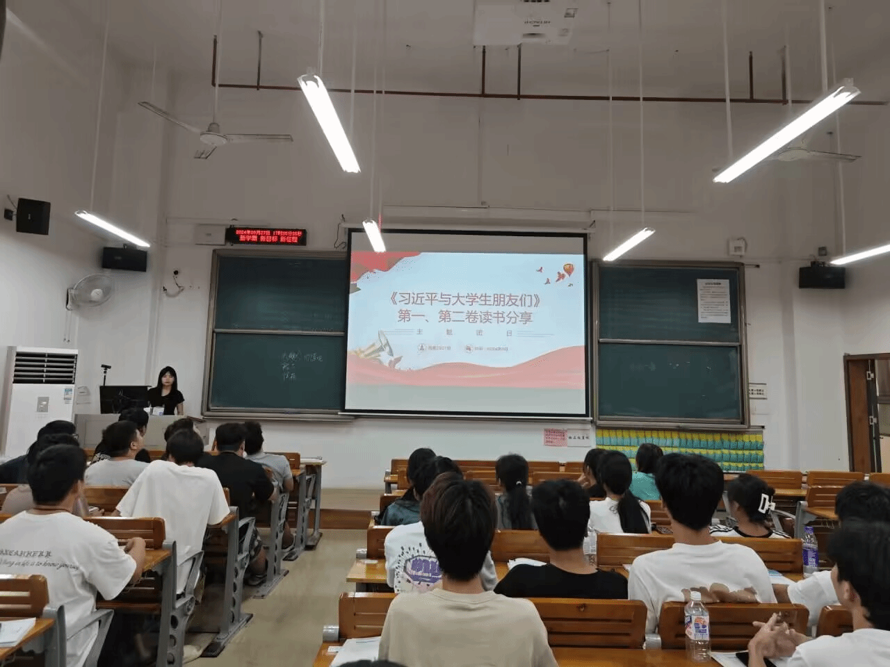 土木工程学院团总支于9月20日在5教10楼开展了《习近平与大学生朋友们》学习专题读书分享活动。土木工程学院团总支书记冯光帆,团总支副书记潘秀镇,学生干部以及入党积极分子代表共30余人参加此次活动。潘秀镇副书记分别从内容、时空、实践三个维度分享了《习近平与大学生朋友们》学习心得和体会,并鼓励同学们认真研读,深刻体悟,学会从“小故事”读懂“大道理”、以“小切口”解码“大格局”、用“小作为”诠释“大担当”。在自由分享环节,同学们结合日常学习、生活、学生干部工作经历等分享读书感悟,表示要扎实学识,锻炼本领,将习近平总书记的殷切嘱托化为实际行动。活动最后,冯光帆书记嘱咐同学们,不仅要读好《习近平与大学生朋友们》这一系列生动、宝贵的学习内容,还要用好这个内容助力成长、助力坚定理想信念、助力树立和完成远大目标。