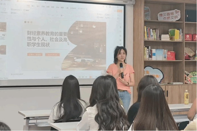 “范范而谈FUN TALK”第2期由首页马克思主义学院张泊艺老师以《高职学生财经素养教育问题思考》为题作分享。张泊艺老师从财经素养的内涵、教育重要性及现状三方面进行讲解,并与同学们积极探讨、分享体会。本次活动使同学们提高了财经素养,了解了财经知识、理财技能、财富观念等,同时,也认识到了财经素养对大家在生活教育、生涯教育、情感教育、思想政治教育与道德教育等方面有着重要意义。