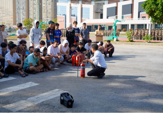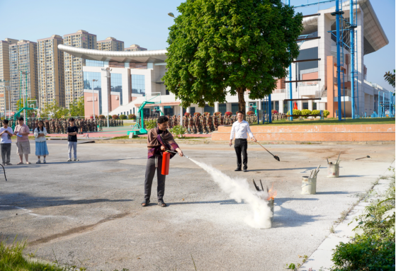 11月8日下午,全体留学生在各自宿舍听到消防警报声后,按照消防逃生要求,用湿毛巾捂紧口鼻,快速有序地从所在宿舍楼层的各个安全出口到对应的疏散集合地点。随后,学校物业、保卫处工作人员向同学们讲解如何正确使用灭火器,并组织指导同学们轮流进行灭火器的实操体验,感受真实场景下使用灭火器的技巧和安全注意事项。