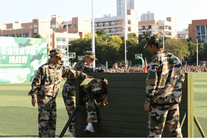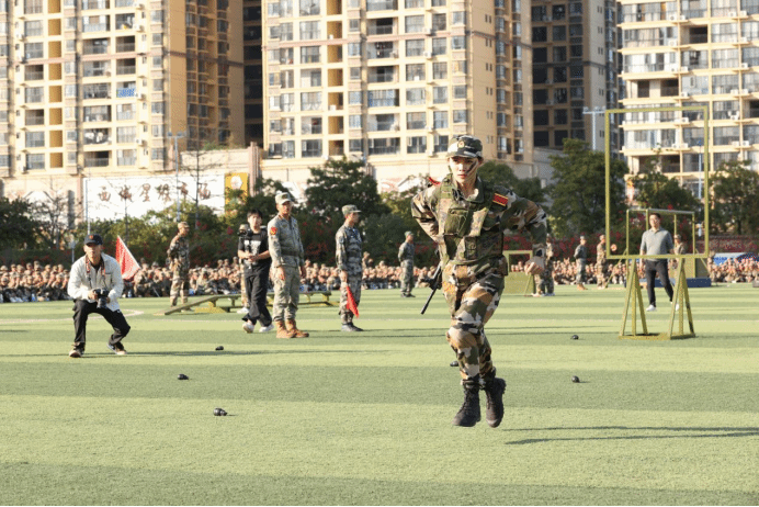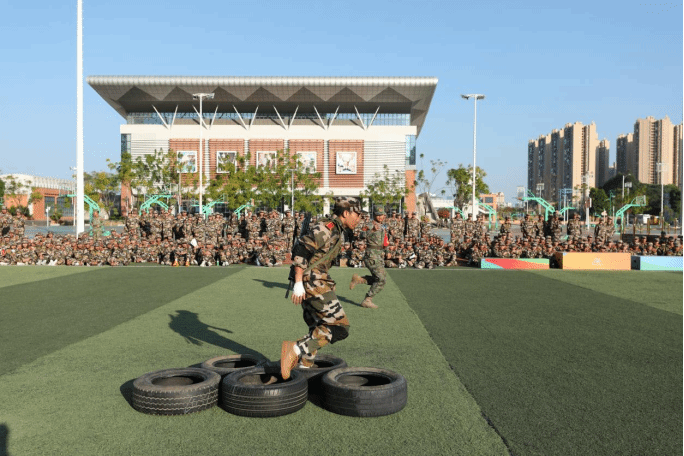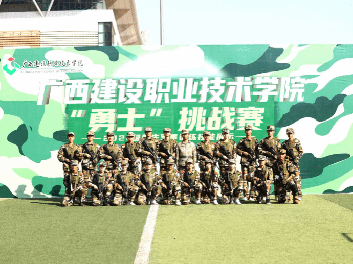 广西建院11月21日讯(文/何宇光 黄春婷 图/国防教育工作室)11月19日下午,学校“勇士”挑战赛在学校运动场“高燃”开场,来自各二级学院的“勇士”们组成了7支参赛队,展开了一场硬核较量,军味十足、战味浓厚的挑战赛,让在场的师生看得热血沸腾,整个赛场的呐喊助威声此起彼伏,响彻校园。本次比赛由党委学生工作部主办,国防教育辅导员工作室承办。
