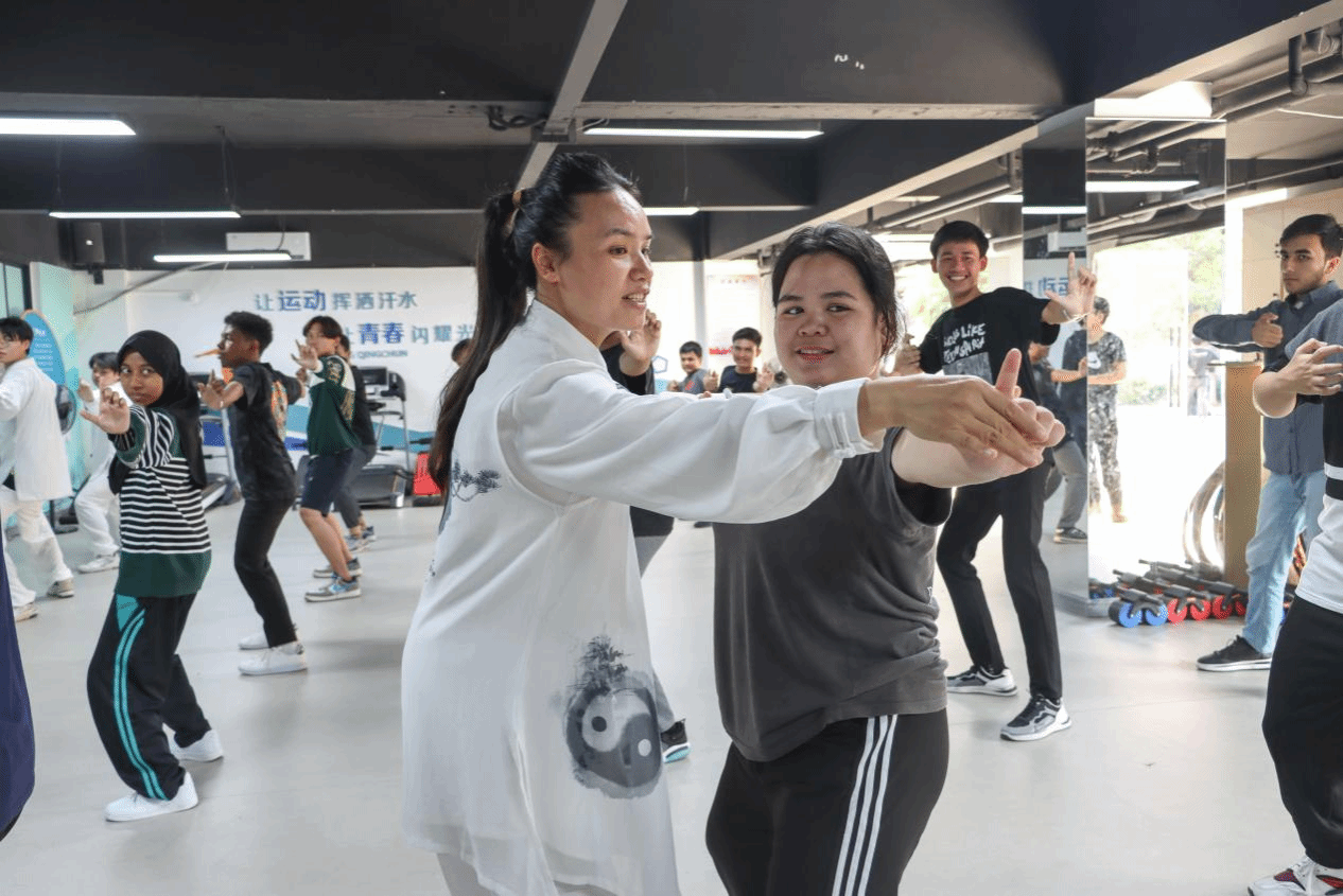 这里是民族体育的欢乐汇聚地。每逢周二,健身吧就变身为民族传统体育体验中心。板鞋竞速、传统健身操八段锦、背篓绣球赛等具有民族特色的活动有序开展,学生们积极参与。在壮族板鞋竞速中,同学喊着整齐的口号,携手冲向终点,欢笑声、加油声交织一片;在八段锦体验中,同学们跟着指导老师的动作缓缓“画拳出掌”。“民族体育项目展现出了独特的魅力和深厚的文化底蕴,通过参与其中,更拉近了我和同学们的距离。”参与活动的留学生兴奋地分享道。通过这些特色活动,民族体育文化如春风化雨,润泽着学生们的心田,编织起紧密的团结纽带。