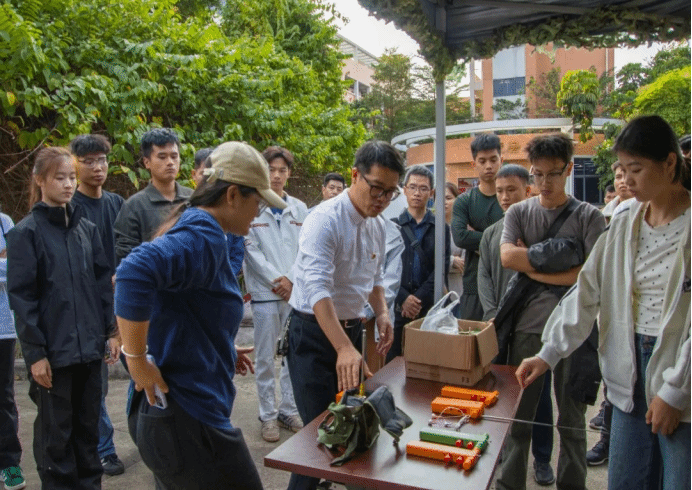 来访师生体验无线电测向和模拟射击项目