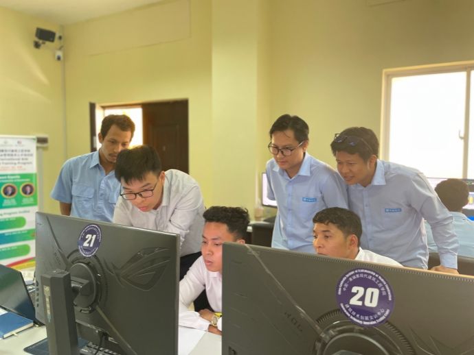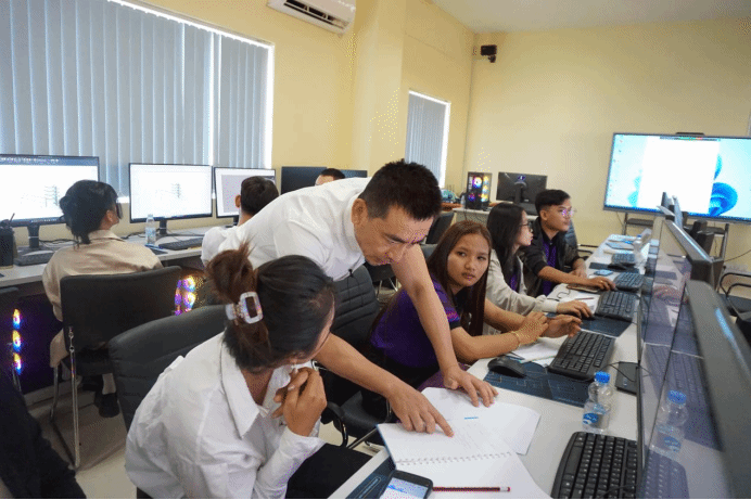 本次培训班为期三天,培训对象主要来自柬埔寨国家技术培训学院的师生以及中建四局、上海宝冶等中资企业的当地员工。广西建院派出的培训教师有来自拥有二十年企业工作经验的博士,有在全国高职教师教学能力大赛获奖教师,有参加国际雷速在线网站信息化竞赛获奖学生团队的指导教师。培训课程涉及BIM施工模拟应用、雷速在线网站设计领域前沿问题分析与解决案例、中国优秀国企BIM应用体系介绍以及国际BIM大奖赛优秀应用案例分享等。课程资源均由校企共同开发,培训教师均用英语授课,通过理论结合实操的形式,让学员们深入理解了BIM技术的优势和实践方法,教学现场互动热烈。