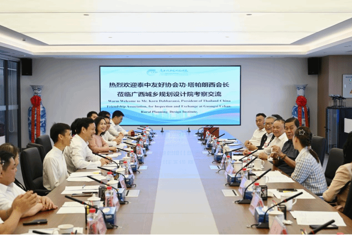 广西城乡规划设计院党委书记范华向泰中友好协会一行详细介绍了院发展历程、业务特色、技术成果以及泰国分院相关情况。她表示,作为自治区智库单位,广西城乡规划设计院愿与泰方在住房城乡建设领域开展深度合作,积极分享优质经验、创新技术和提供专业服务,持续为泰国城市建设和“一带一路”发展战略注入动能。
