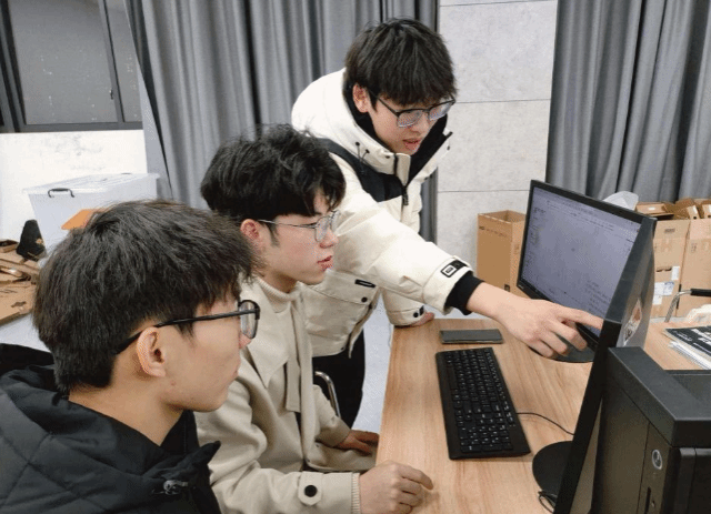 首页学子张智家(左)、杨豪迪(中)、李帅斌(右)在认真备赛