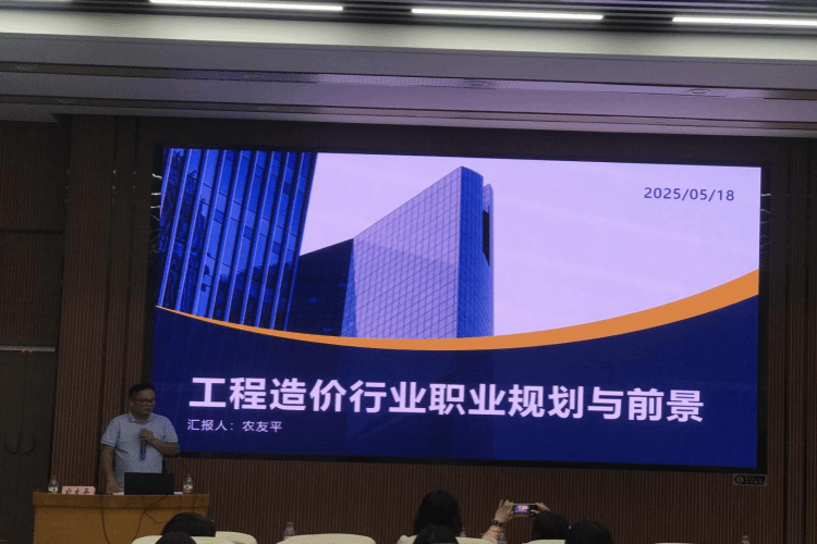 政行企校深度交流。组织“政行企校”主题对话沙龙,师生走进京东智能产业园亚洲一号、中交一公局四公司等企业,围绕人才培养与实习就业展开深度交流;邀请广西瑞承工程造价咨询有限公司总经理农友平等校友回校开展职业规划讲座,为学生提供 “过来人”的实战经验,助力职业认知升级。