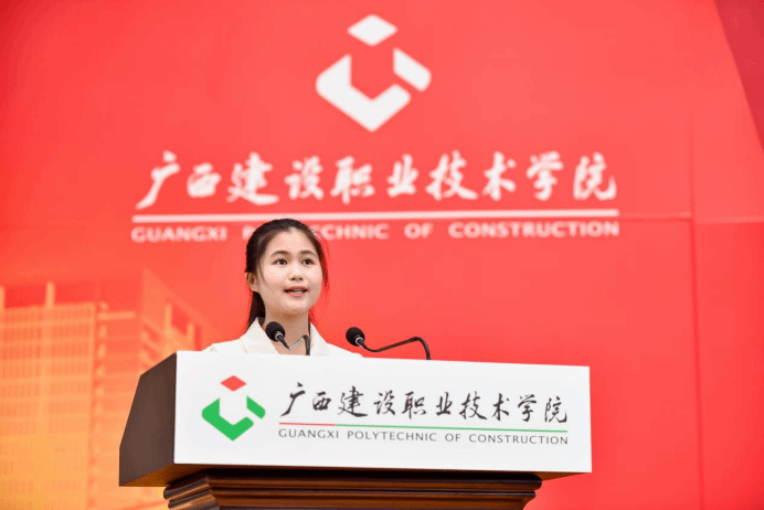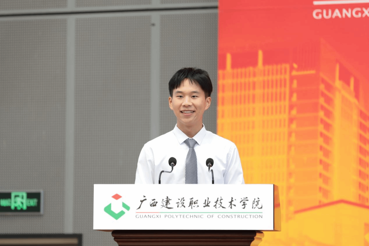 在校生代表信息工程学院网络2103班的麦原华同学发言