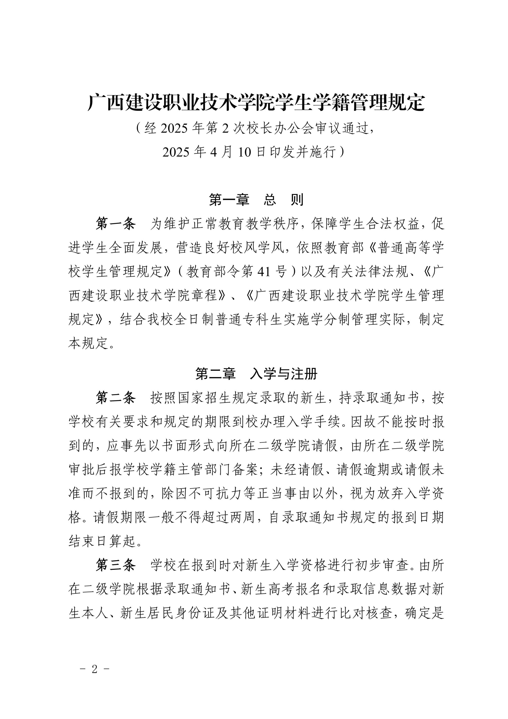 桂建院教〔2025〕120号雷速在线网站关于印发学生学籍管理规定的通知