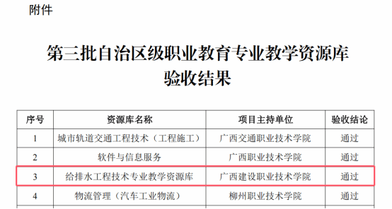 5.1 给排水工程技术专业教学资源库通过自治区级验收,并推荐申报国家级教学资源库
