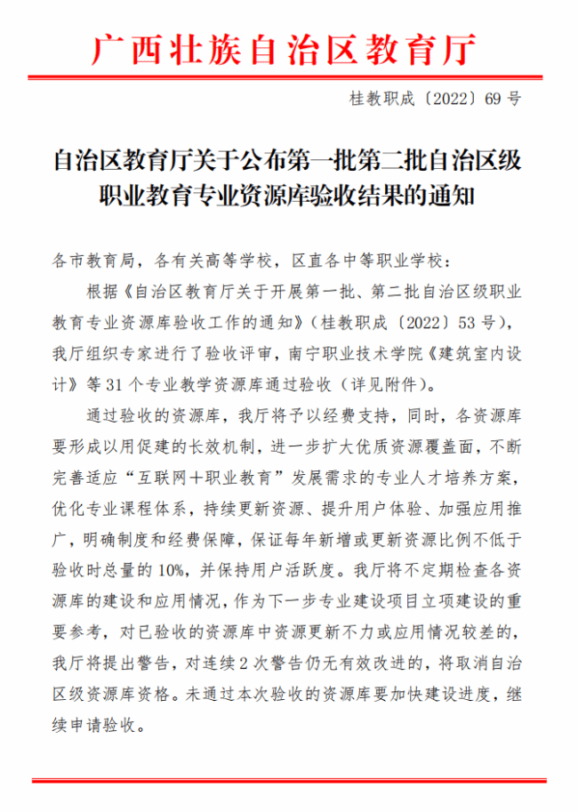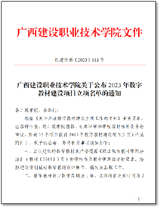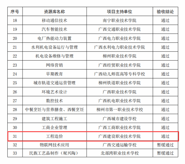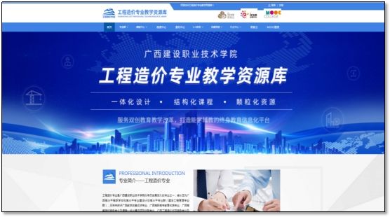 校企共建自治区级职业教育《工程造价》专业教学资源库,课程入选资源库智慧职教平台,已顺利通过验收。