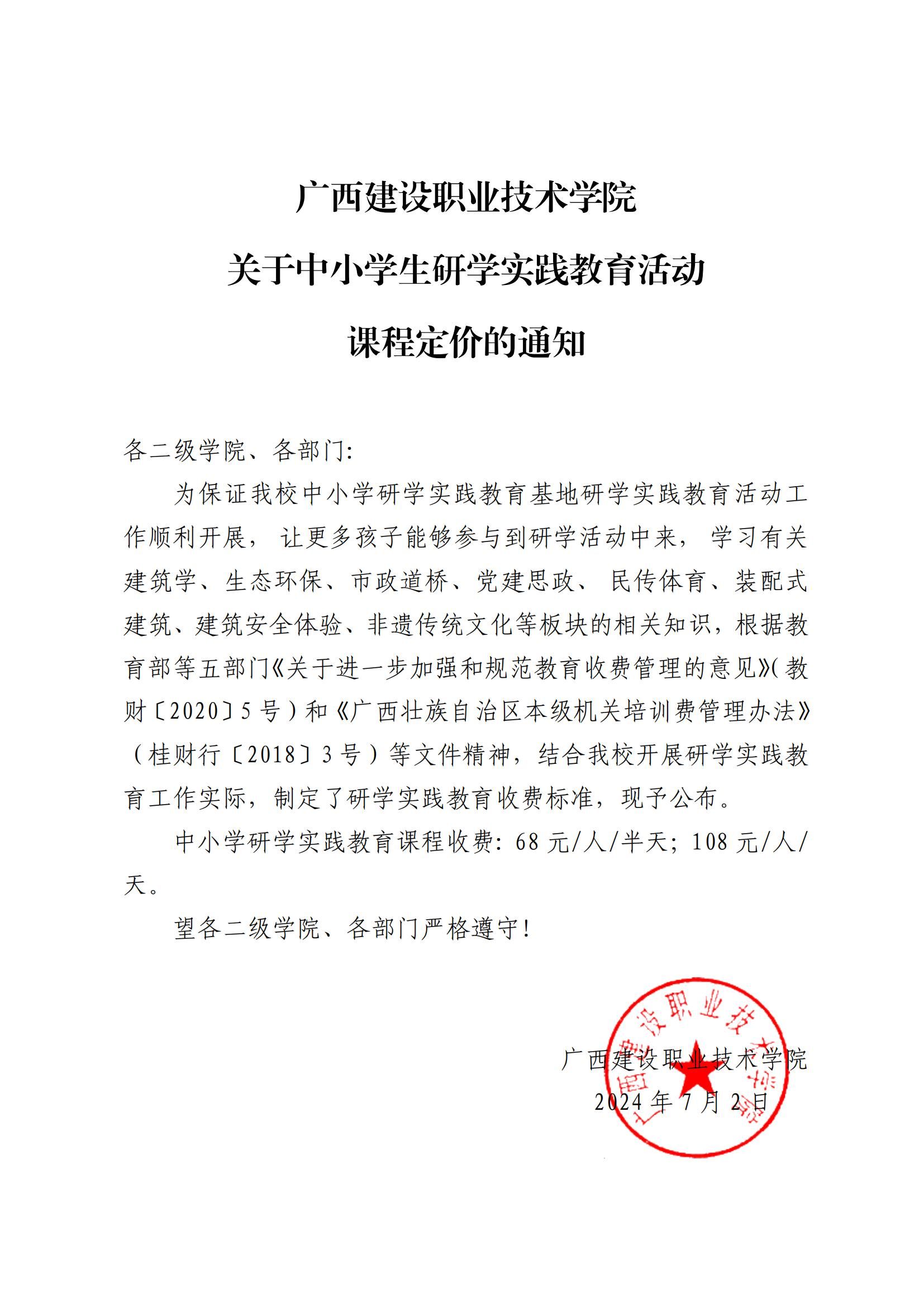 培训通知 当前位置: 首页 >> 培训通知 >> 正文 雷速在线网站关于中小学生研学实践教育活动课程定价的通知 发布日期:2024-07-04 点击: 附件【雷速在线网站关于中小学生研学实践教育活动课程定价的通知.pdf】已下载次