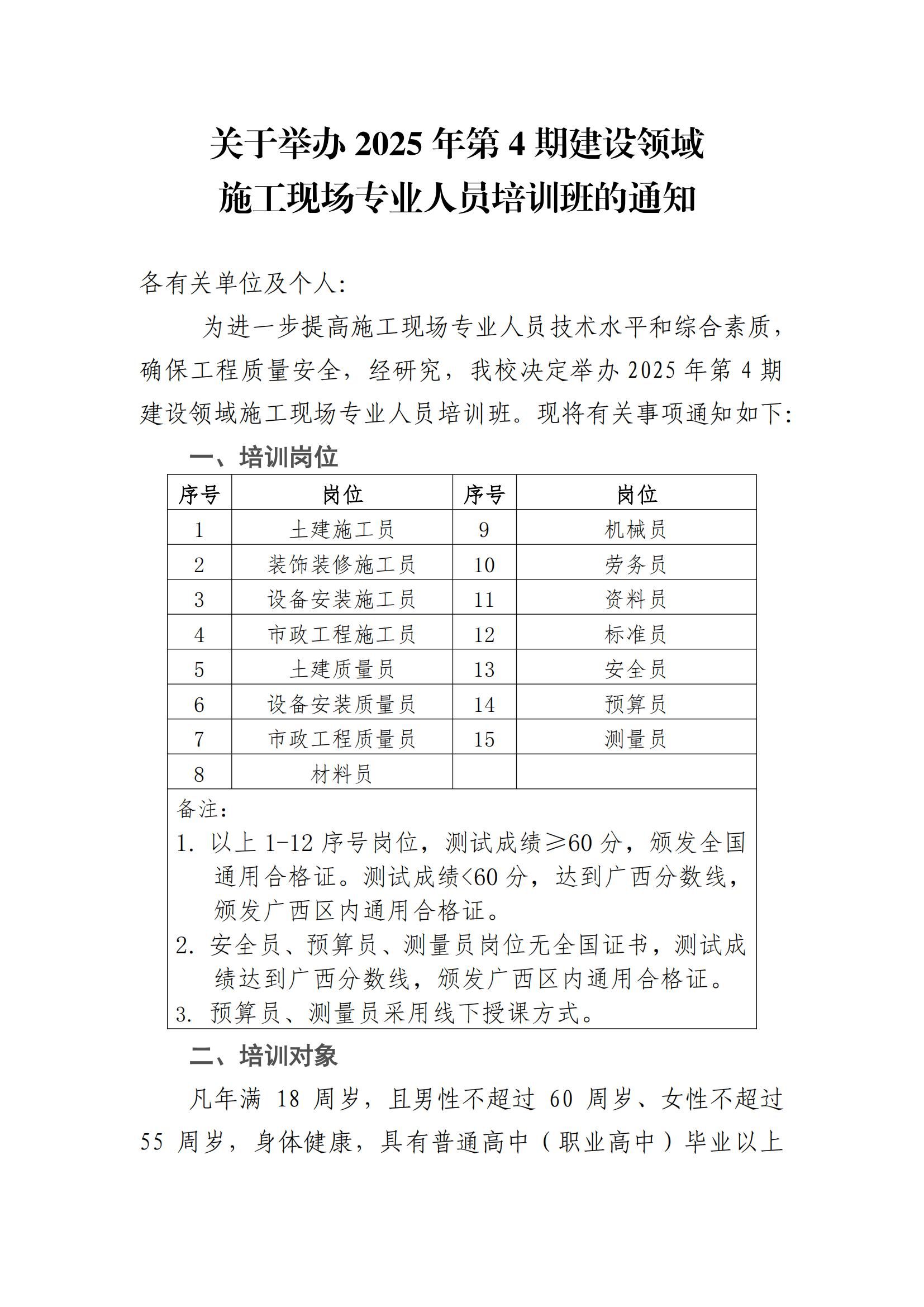 关于举办2025年第4期建设领域施工现场专业人员培训班的报名通知