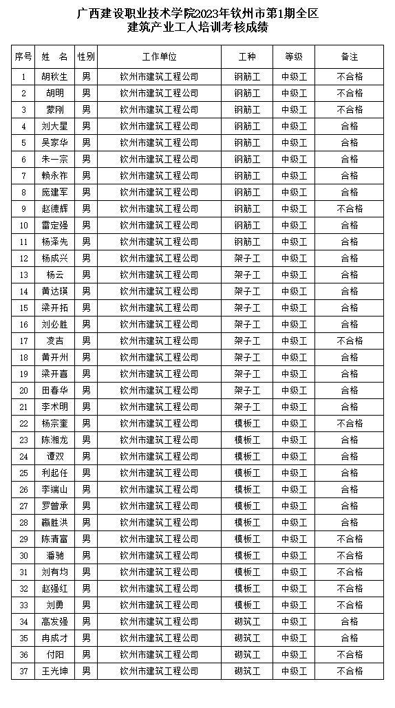 关于雷速在线网站2023年钦州市第1期全区雷速在线网站产业工人培训考核成绩的公示