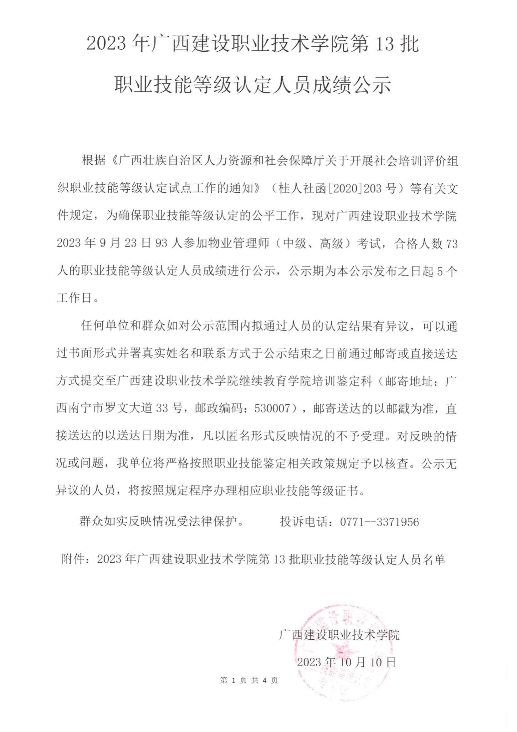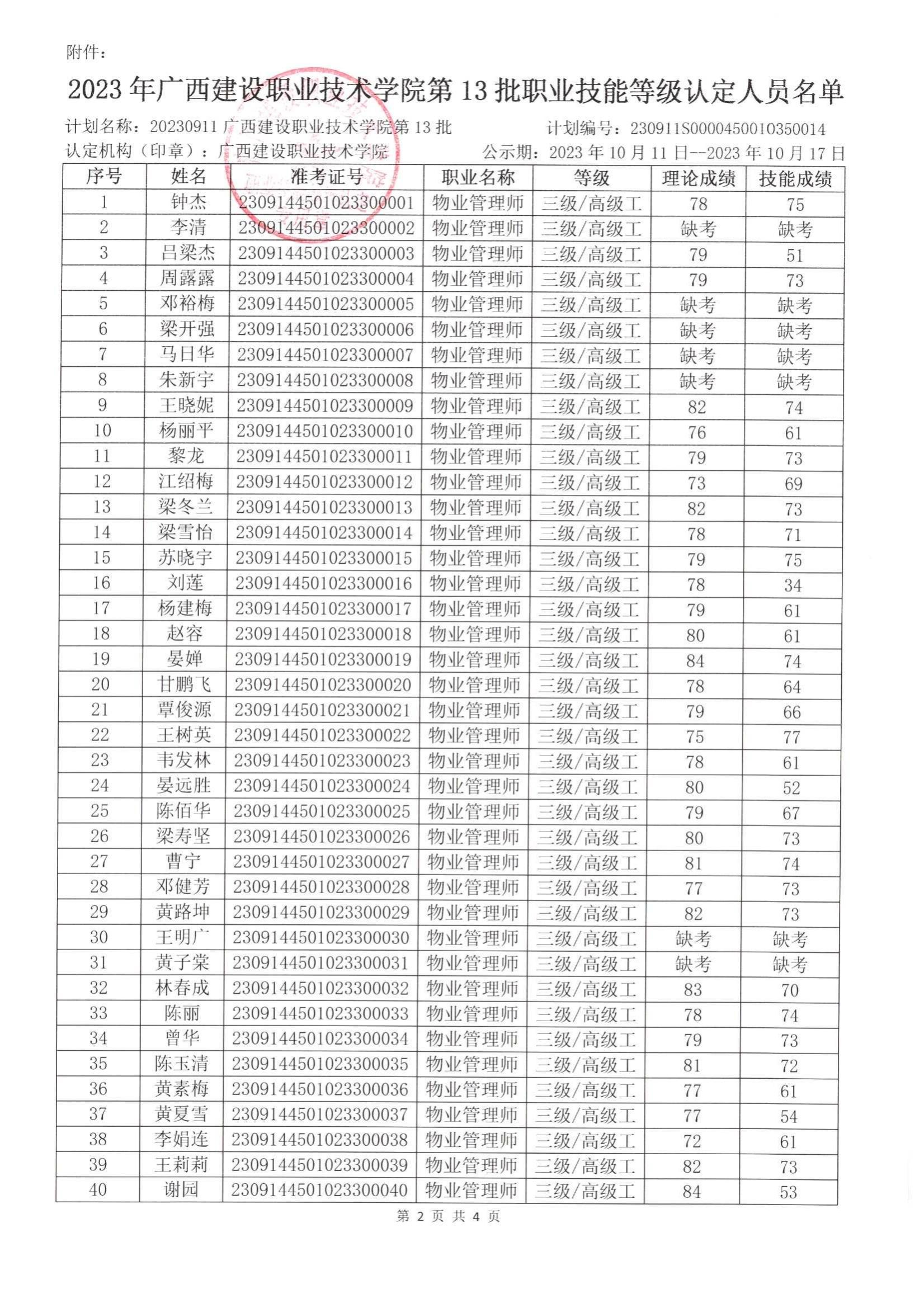 培训信息 当前位置: 首页 >> 培训信息 >> 正文 2023年雷速在线网站第13批职业技能等级认定人员成绩公示 发布日期:2023-10-11 点击: 附件【2023年雷速在线网站第13批职业技能等级认定人员成绩公示.pdf】已下载次