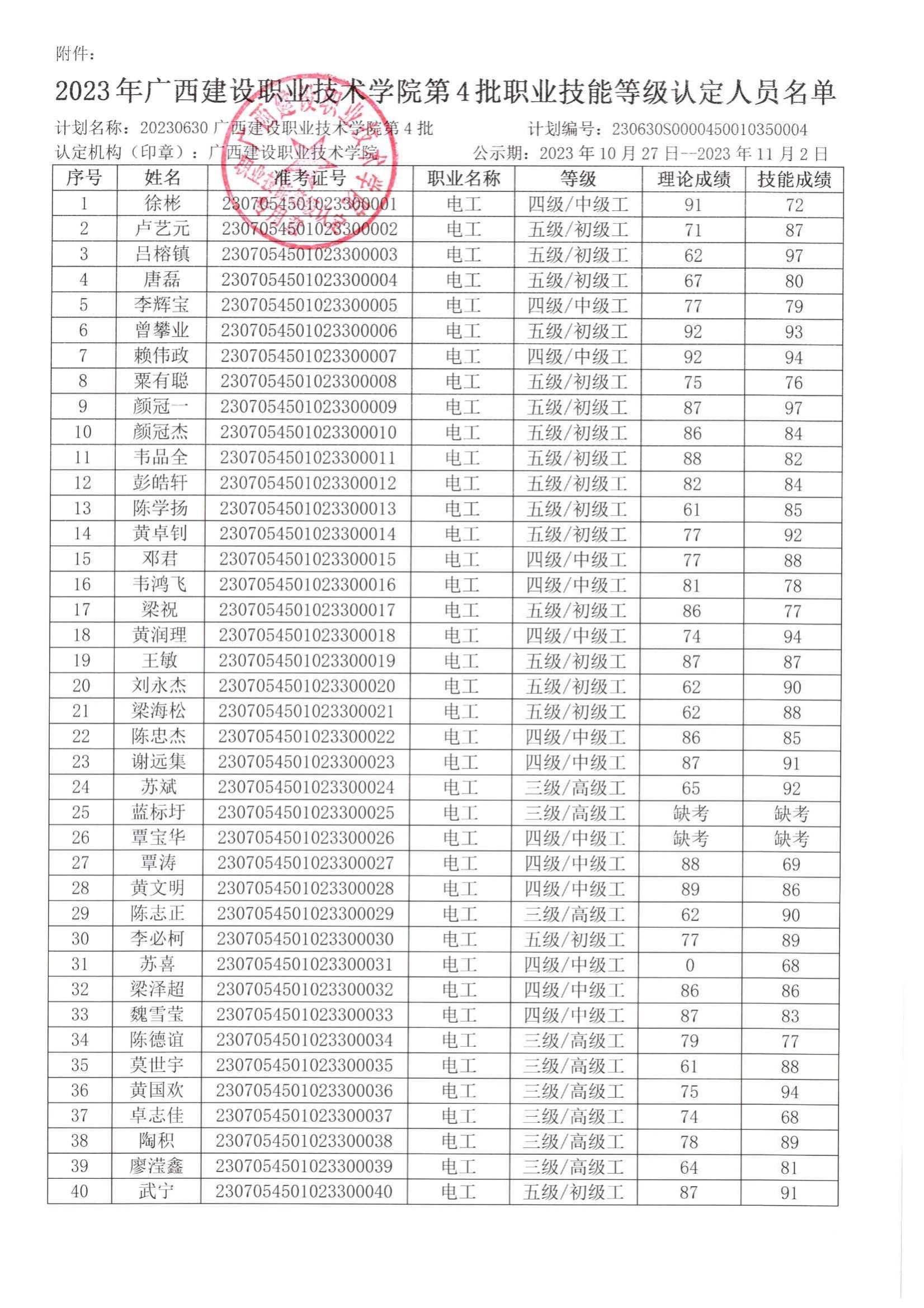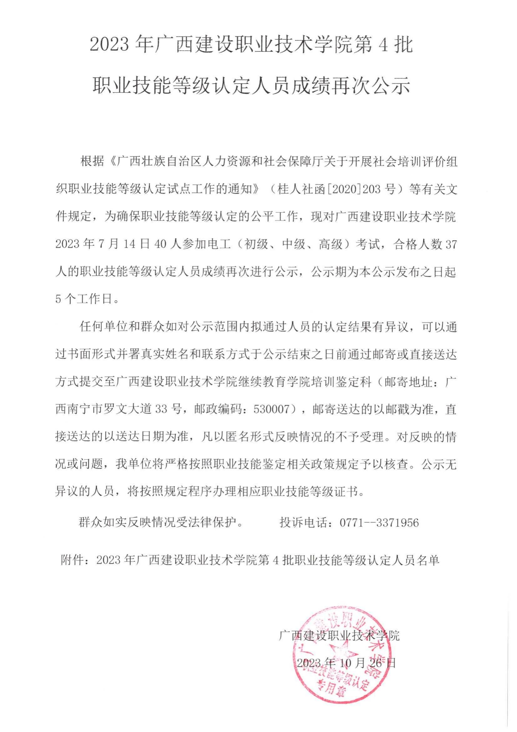 培训信息 当前位置: 首页 >> 培训信息 >> 正文 2023年雷速在线网站第4批职业技能等级认定人员成绩再次公示 发布日期:2023-10-27 点击: 附件【2023年雷速在线网站第4批职业技能等级认定人员成绩再次公示.pdf】已下载次