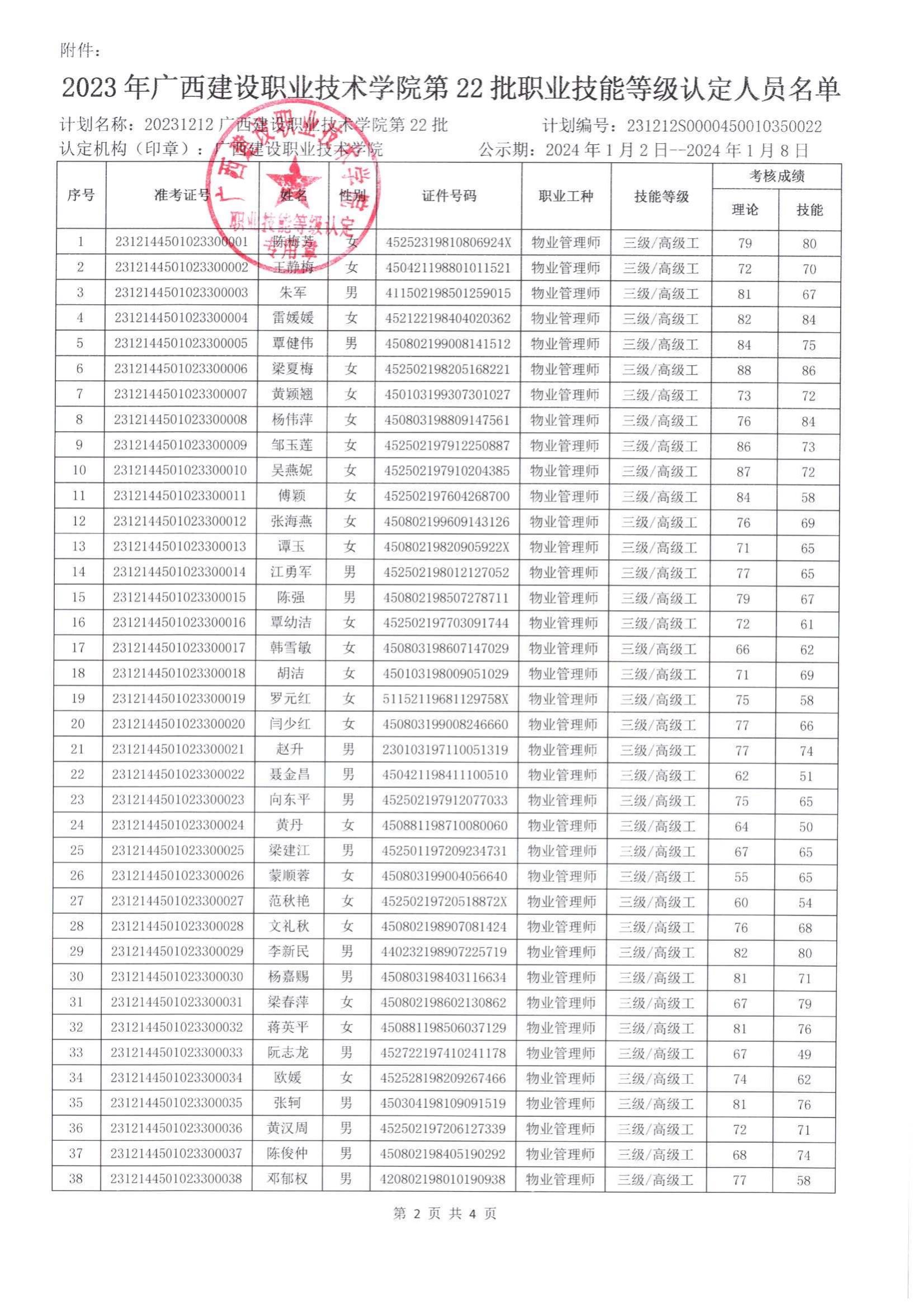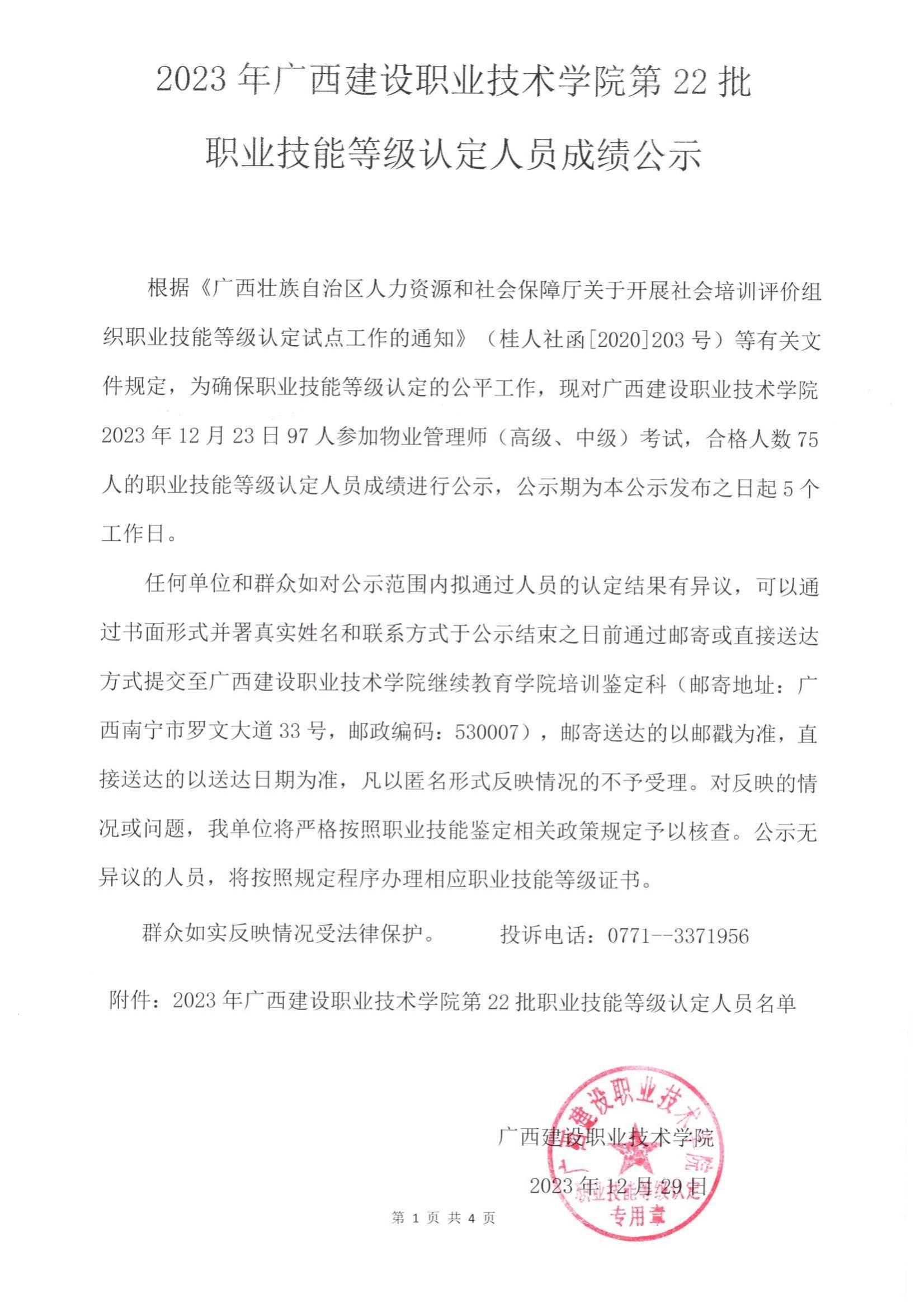 培训信息 当前位置: 首页 >> 培训信息 >> 正文 2023年雷速在线网站第22批职业技能等级认定人员成绩公示 发布日期:2024-01-02 点击: 附件【2023年雷速在线网站第22批职业技能等级认定人员成绩公示.pdf】已下载次