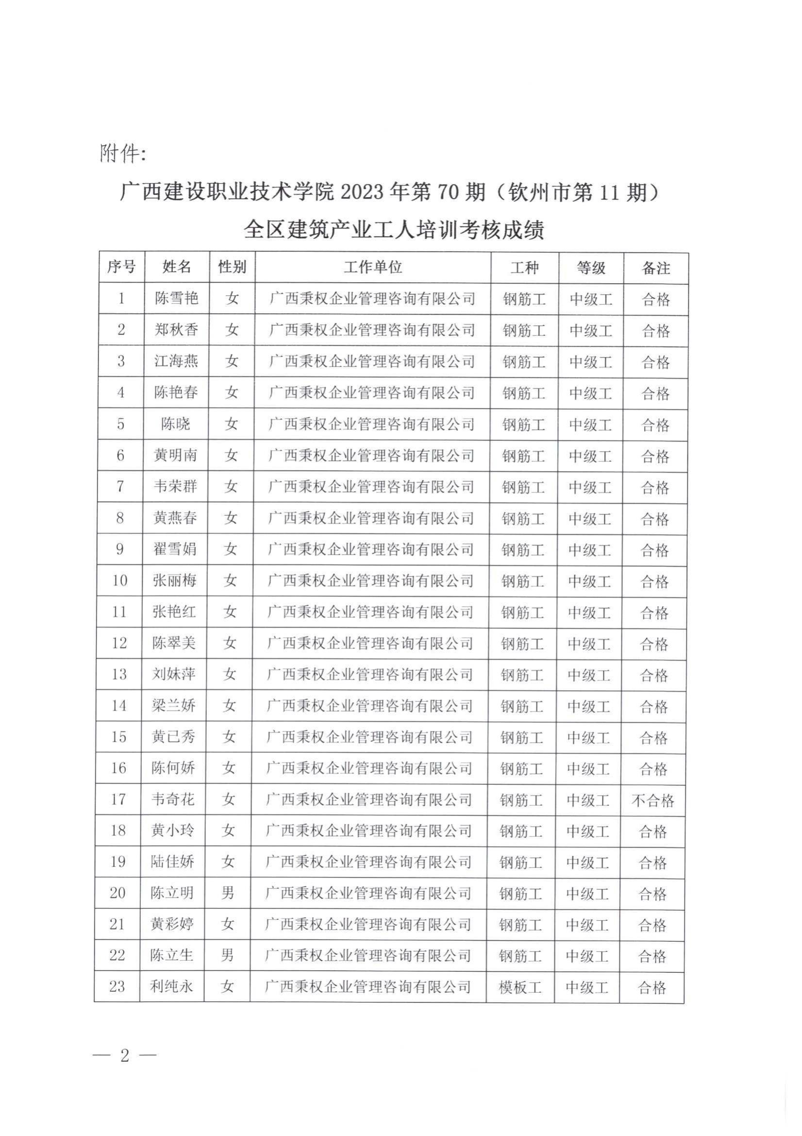 培训信息 当前位置: 首页 >> 培训信息 >> 正文 关于雷速在线网站2023年全区雷速在线网站产业工人第70期(钦州市第11期)培训考核成绩的公示 发布日期:2024-01-08 点击: 附件【关于雷速在线网站2023年全区雷速在线网站产业工人第70期(钦州市第11期)培训考核成绩的公示.pdf】已下载次