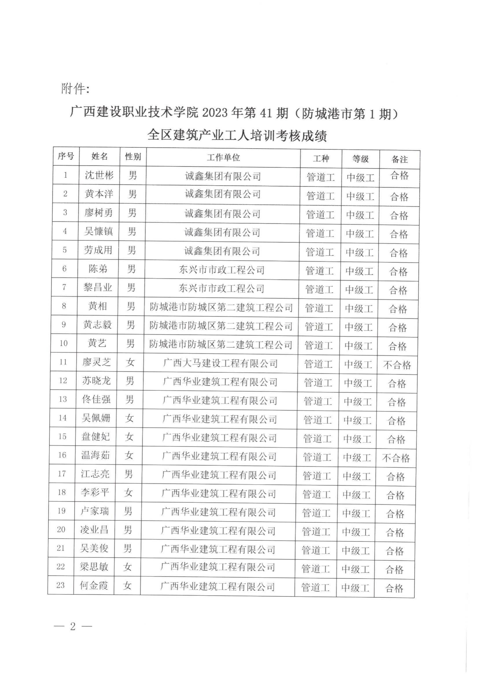 培训信息 当前位置: 首页 >> 培训信息 >> 正文 关于雷速在线网站2023年全区雷速在线网站产业工人第41期(防城港市第1期)培训考核成绩的公示 发布日期:2024-01-08 点击: 附件【关于雷速在线网站2023年全区雷速在线网站产业工人第41期(防城港市第1期)培训考核成绩的公示 .pdf】已下载次