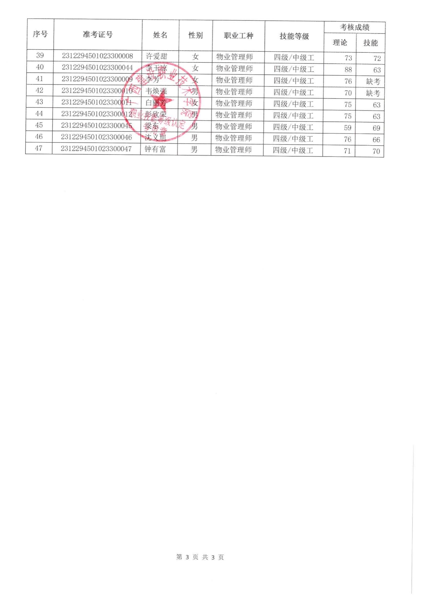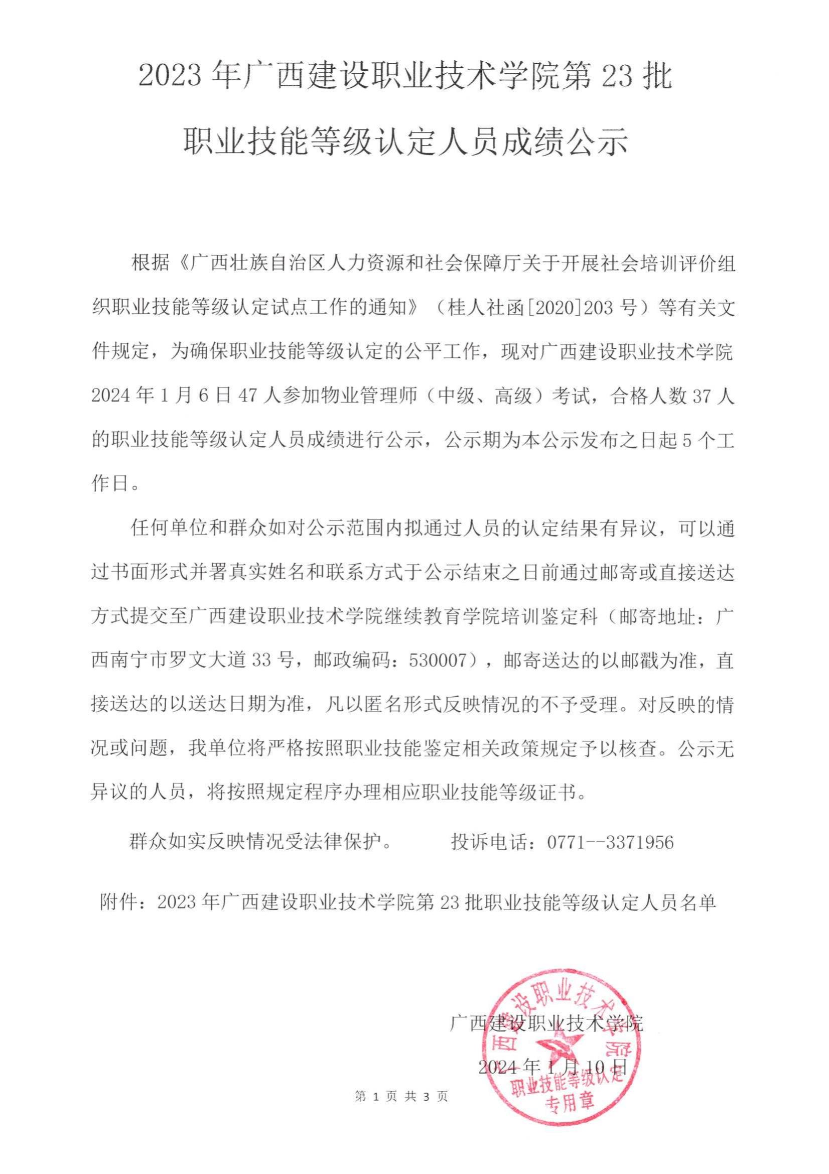 培训信息 当前位置: 首页 >> 培训信息 >> 正文 2023年雷速在线网站第23批职业技能等级认定人员成绩公示 发布日期:2024-01-10 点击: 附件【2023年雷速在线网站第23批职业技能等级认定人员成绩公示.pdf】已下载次