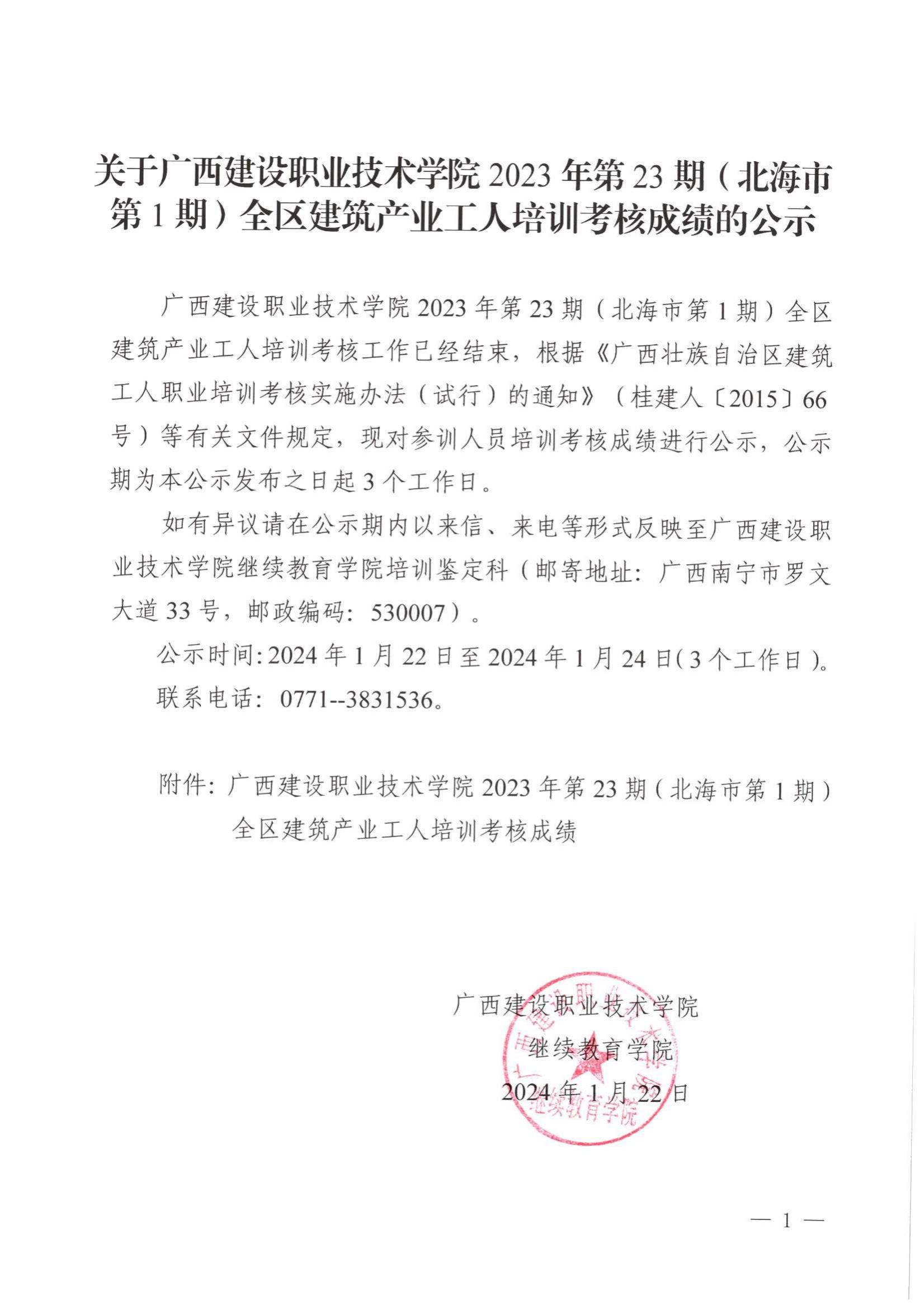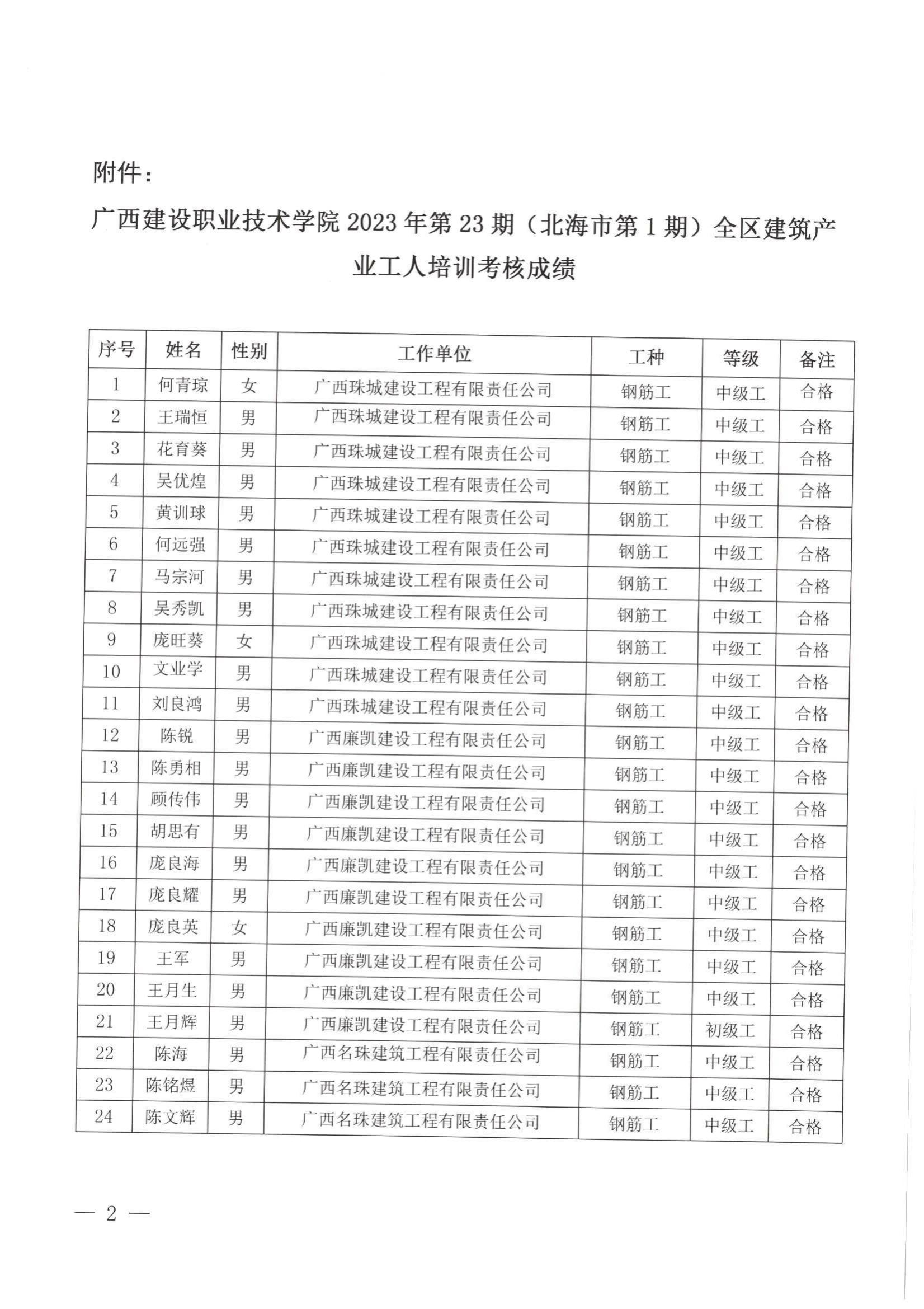 培训信息 当前位置: 首页 >> 培训信息 >> 正文 关于雷速在线网站2023年全区雷速在线网站产业工人第23期(北海市第1期)培训考核成绩的公示 发布日期:2024-01-23 点击: 附件【关于雷速在线网站2023年全区雷速在线网站产业工人第23期(北海市第1期)培训考核成绩的公示.pdf】已下载次