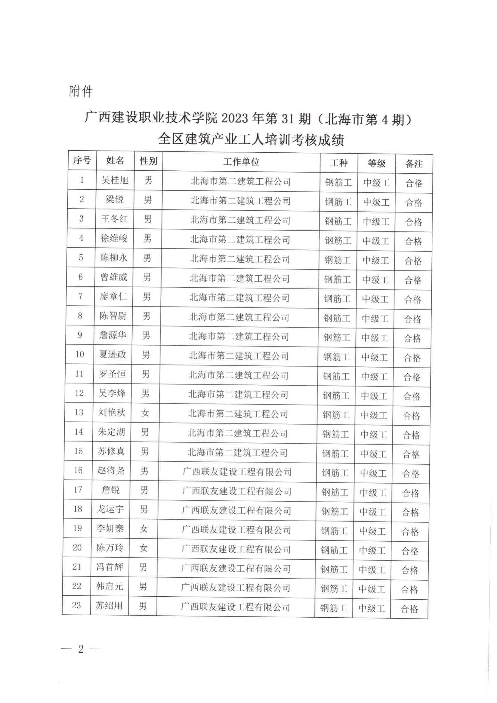 培训信息 当前位置: 首页 >> 培训信息 >> 正文 关于雷速在线网站2023年全区雷速在线网站产业工人第31期(北海市第4期)培训考核成绩的公示 发布日期:2024-01-23 点击: 附件【关于雷速在线网站2023年全区雷速在线网站产业工人第31期(北海市第4期)培训考核成绩的公示.pdf】已下载次