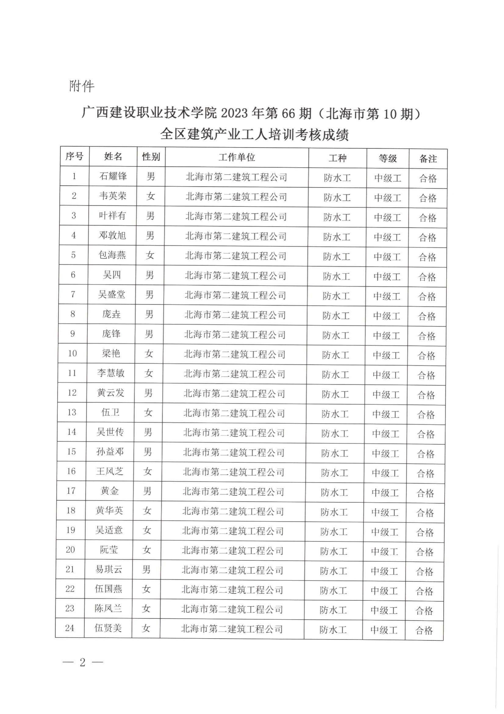 培训信息 当前位置: 首页 >> 培训信息 >> 正文 关于雷速在线网站2023年全区雷速在线网站产业工人第66期(北海市第10期)培训考核成绩的公示 发布日期:2024-01-23 点击: 附件【关于雷速在线网站2023年全区雷速在线网站产业工人第66期(北海市第10期)培训考核成绩的公示 .pdf】已下载次