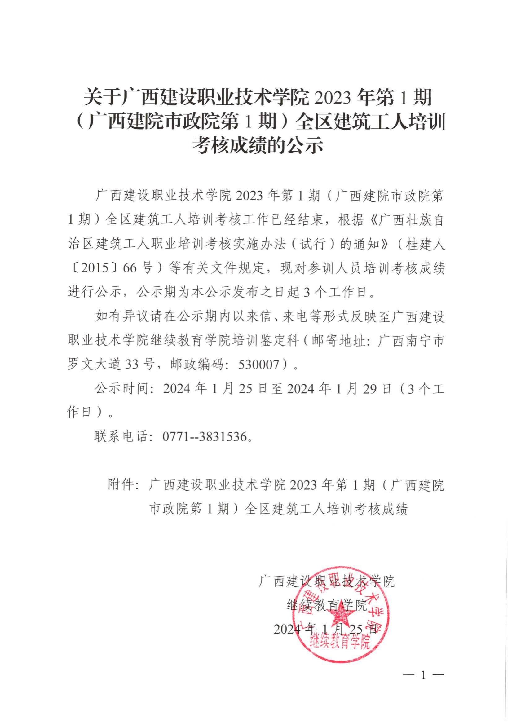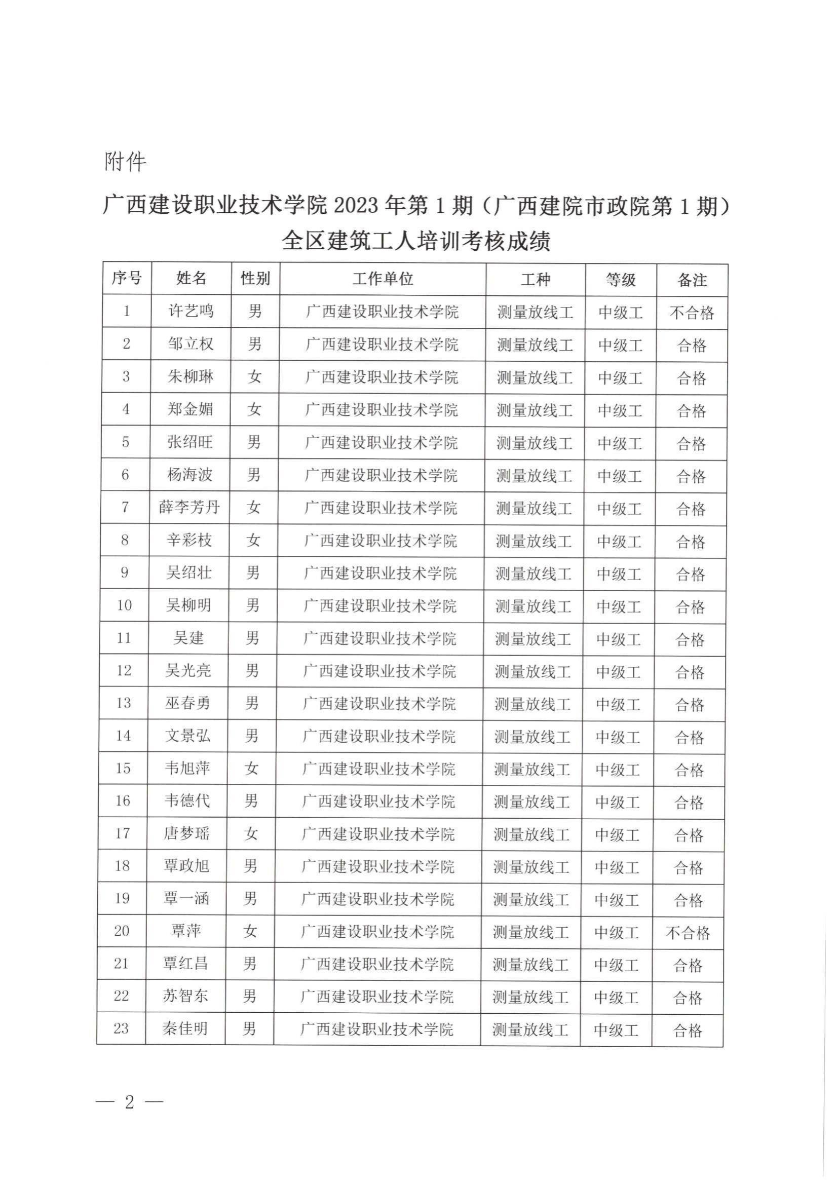 培训信息 当前位置: 首页 >> 培训信息 >> 正文 关于雷速在线网站2023年全区雷速在线网站工人第1期(广西建院市政院第1期)培训考核成绩的公示 发布日期:2024-01-25 点击: 附件【关于雷速在线网站2023年全区雷速在线网站工人第1期(广西建院市政院第1期)培训考核成绩的公示.pdf】已下载次