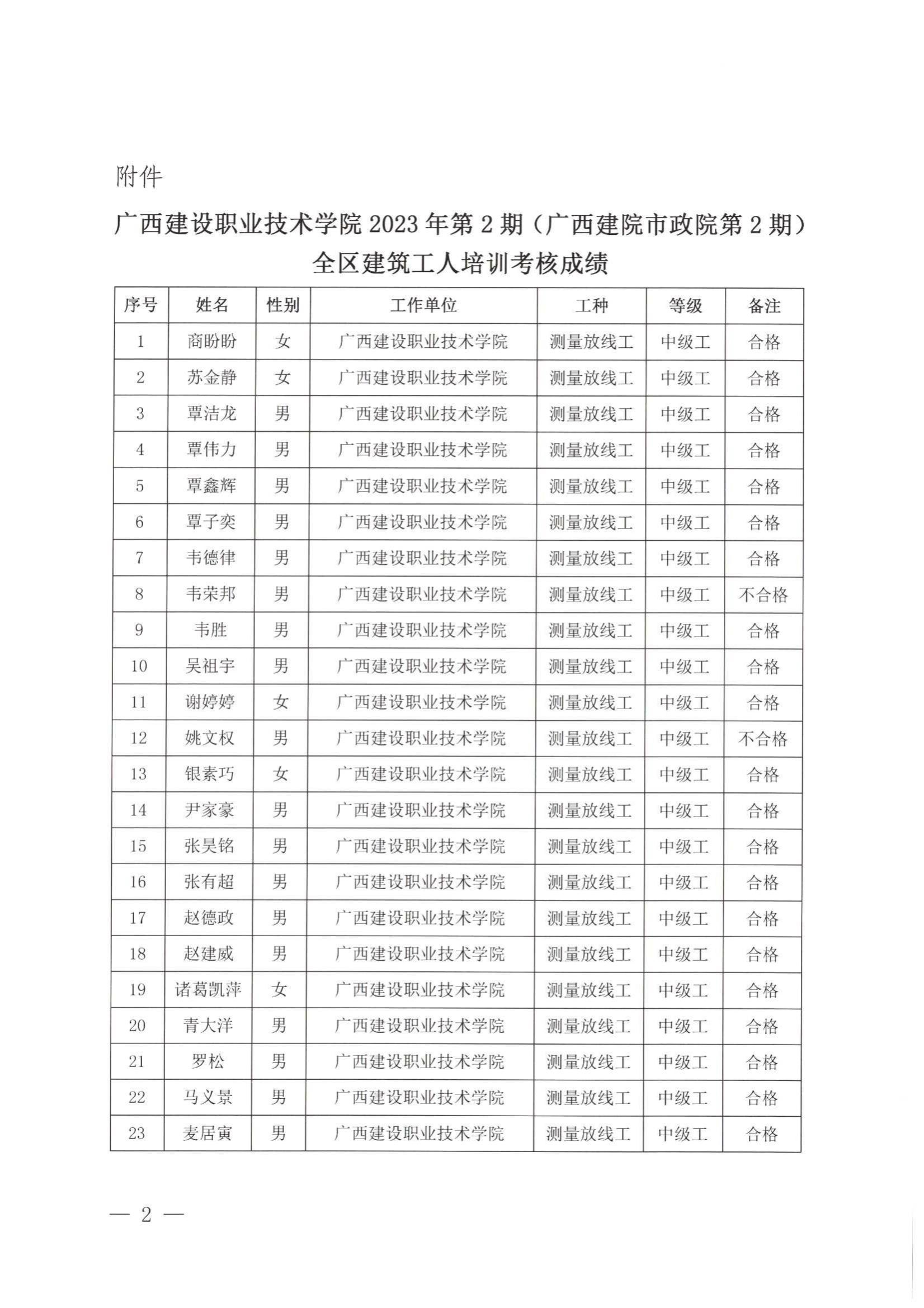 培训信息 当前位置: 首页 >> 培训信息 >> 正文 关于雷速在线网站2023年全区雷速在线网站工人第2期(广西建院市政院第2期)培训考核成绩的公示 发布日期:2024-01-25 点击: 附件【关于雷速在线网站2023年全区雷速在线网站工人第2期(广西建院市政院第2期)培训考核成绩的公示.pdf】已下载次