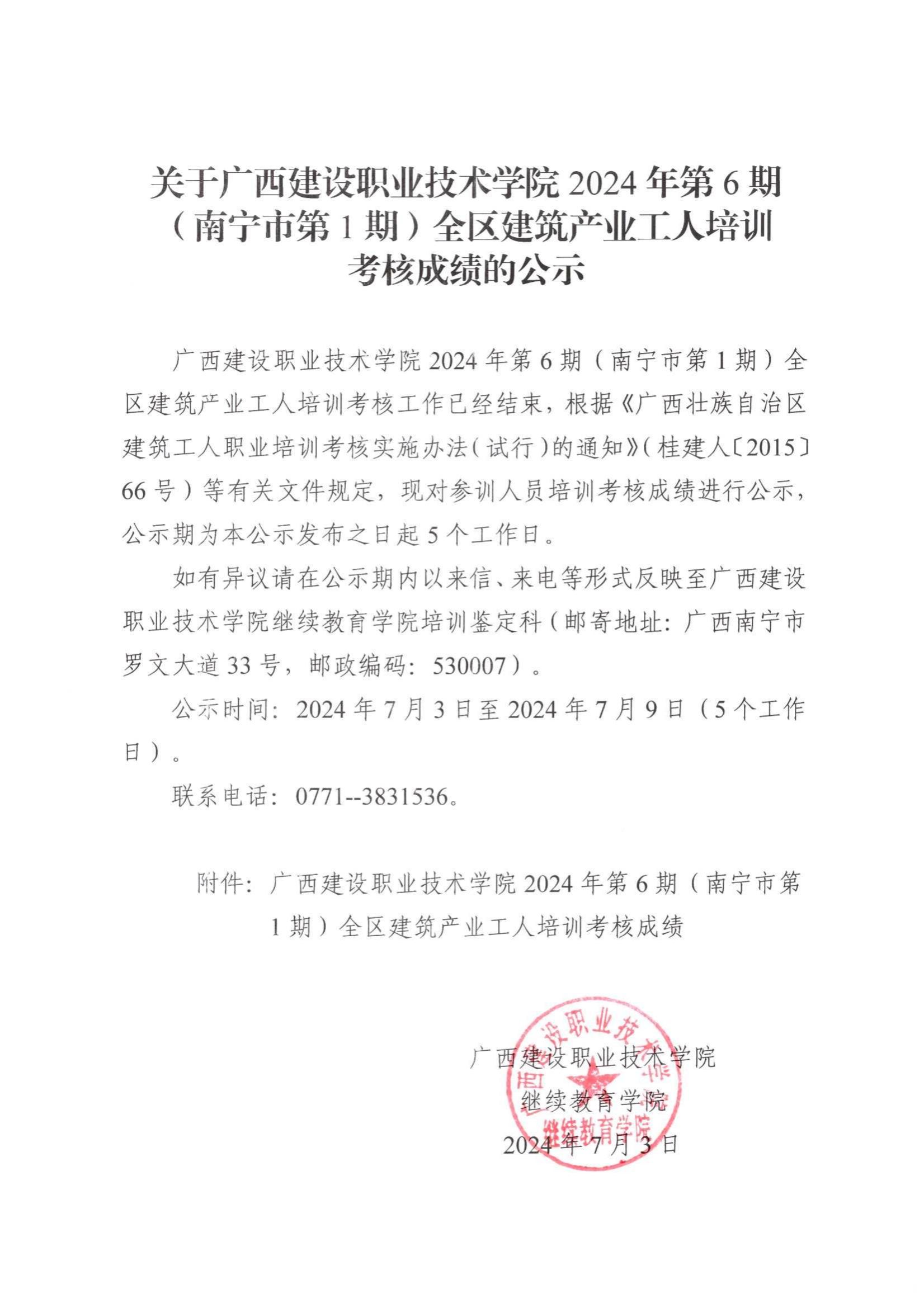 培训信息 当前位置: 首页 >> 培训信息 >> 正文 关于雷速在线网站2024年第6期(南宁市第1期)全区雷速在线网站产业工人培训考核成绩的公示 发布日期:2024-07-04 点击: 附件【关于雷速在线网站2024年第6期(南宁市第1期)全区雷速在线网站产业工人培训考核成绩的公示.pdf】已下载次