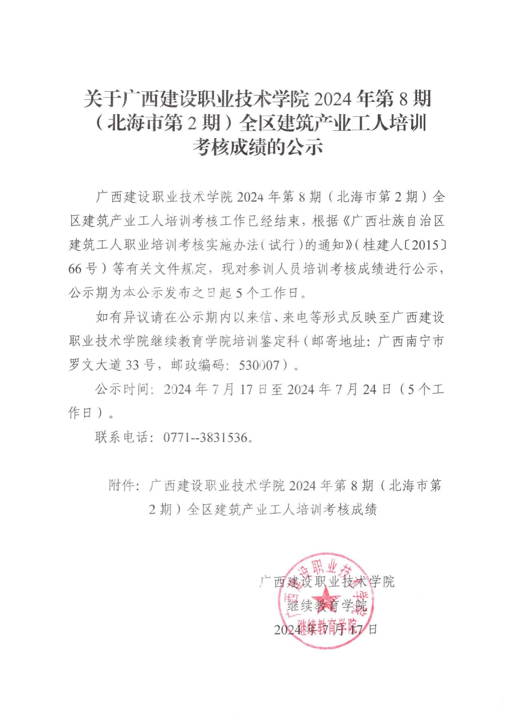 培训信息 当前位置: 首页 >> 培训信息 >> 正文 关于雷速在线网站2024年第8期(北海市第2期)全区雷速在线网站产业工人培训考核成绩的公示 发布日期:2024-07-16 点击: 附件【关于雷速在线网站2024年第8期(北海市第2期)全区雷速在线网站产业工人培训考核成绩的公示.pdf】已下载次