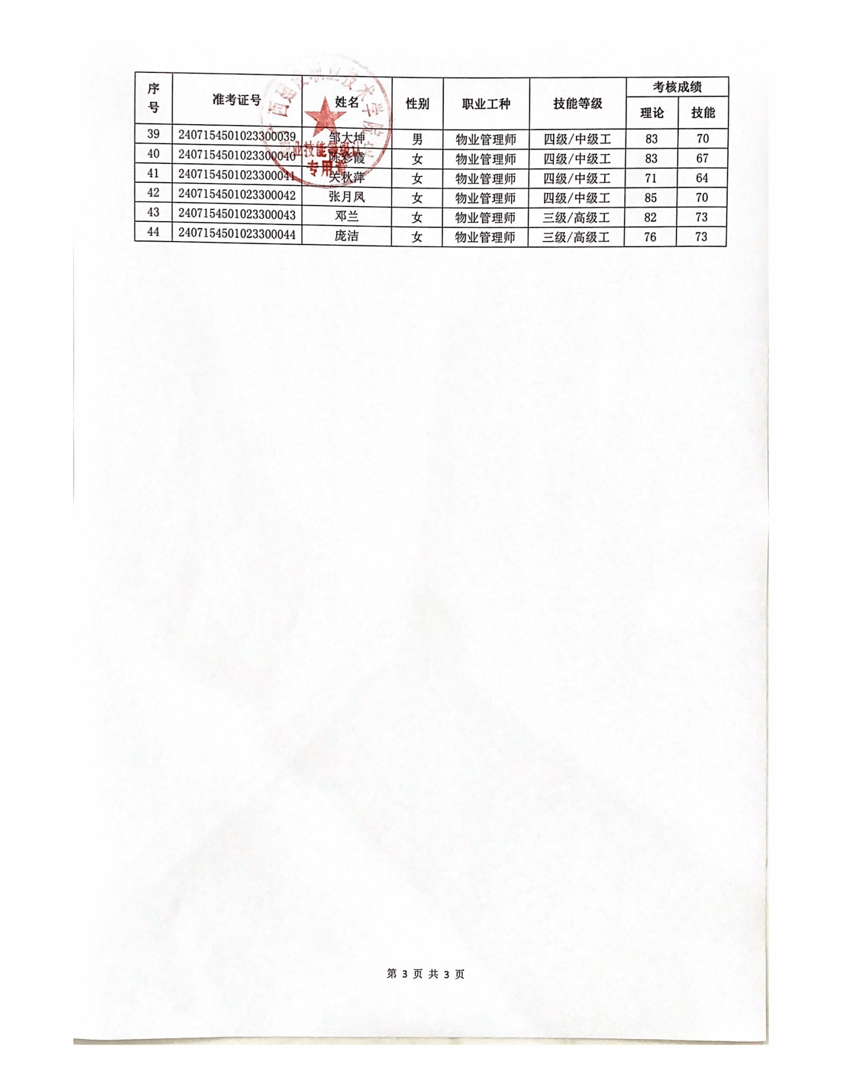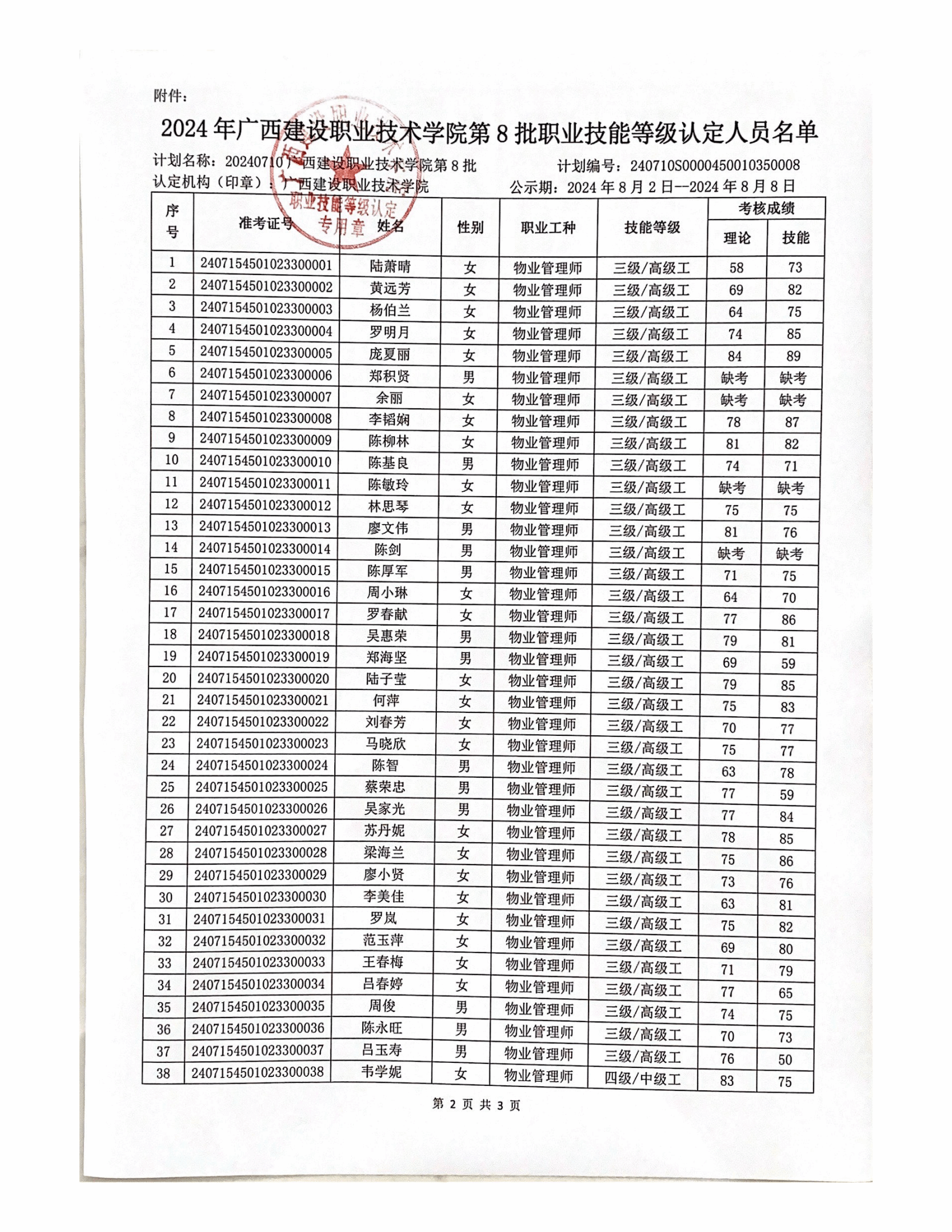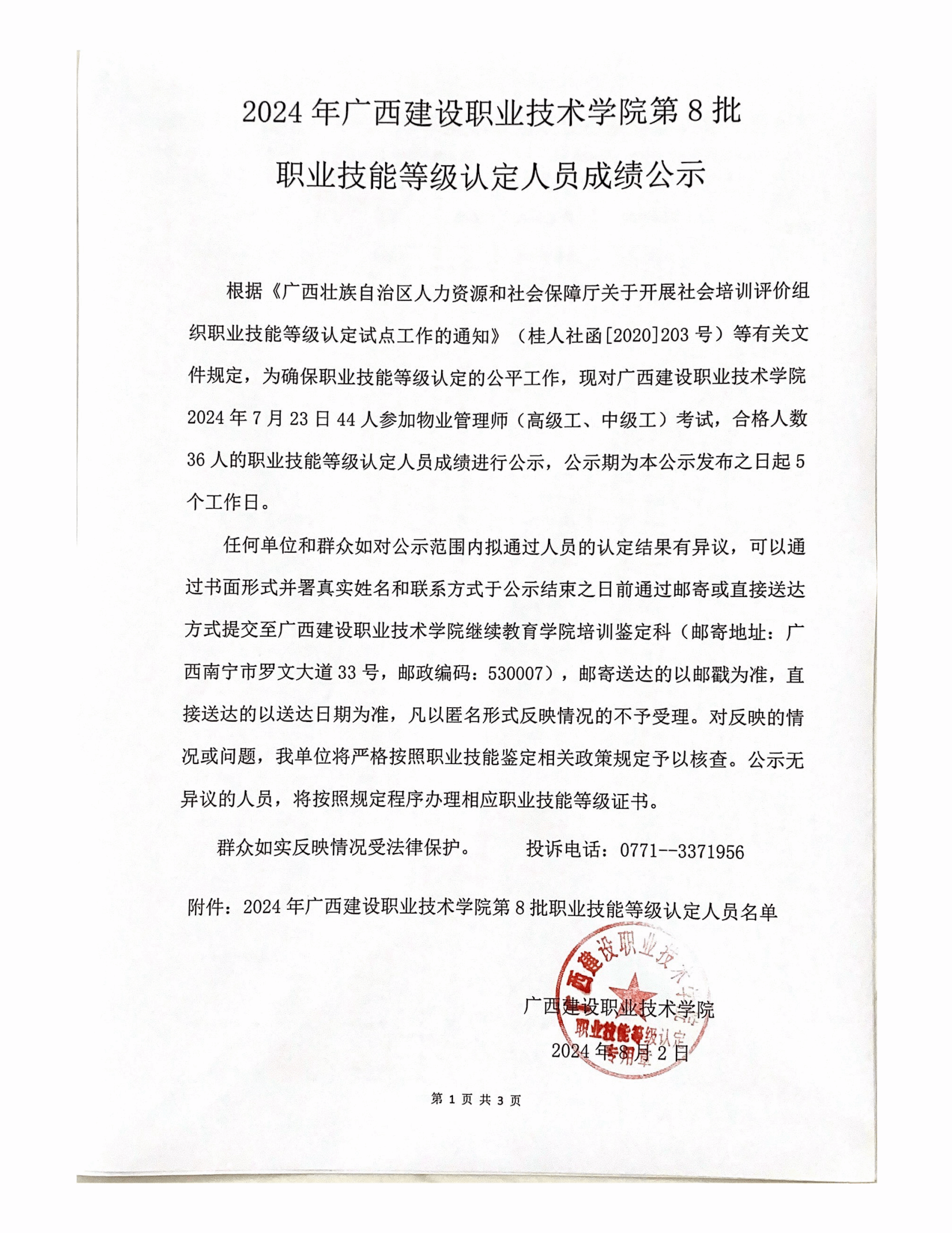 培训信息 当前位置: 首页 >> 培训信息 >> 正文 2024年雷速在线网站第8批职业技能等级认定人员成绩公示 发布日期:2024-08-03 点击: 附件【2024年雷速在线网站第8批职业技能等级认定人员成绩公示.pdf】已下载次