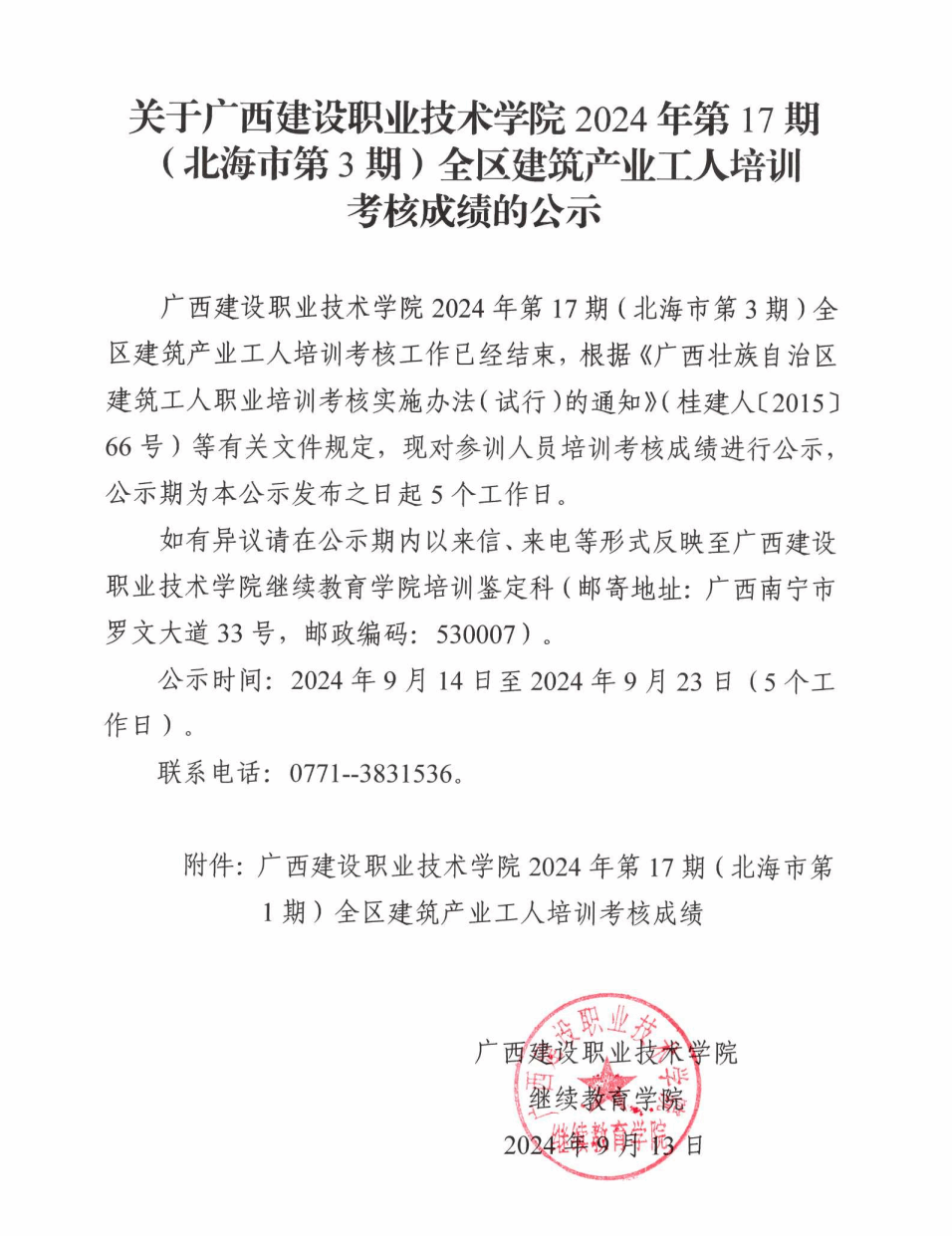 培训信息 当前位置: 首页 >> 培训信息 >> 正文 关于雷速在线网站2024年全区雷速在线网站产业工人第17期(北海市第3期)培训考核成绩的公示 发布日期:2024-09-13 点击: 附件【关于雷速在线网站2024年全区雷速在线网站产业工人第17期(北海市第3期)培训考核成绩的公示.pdf】已下载次